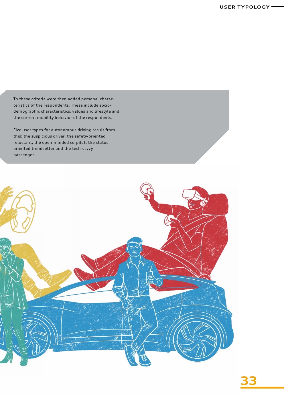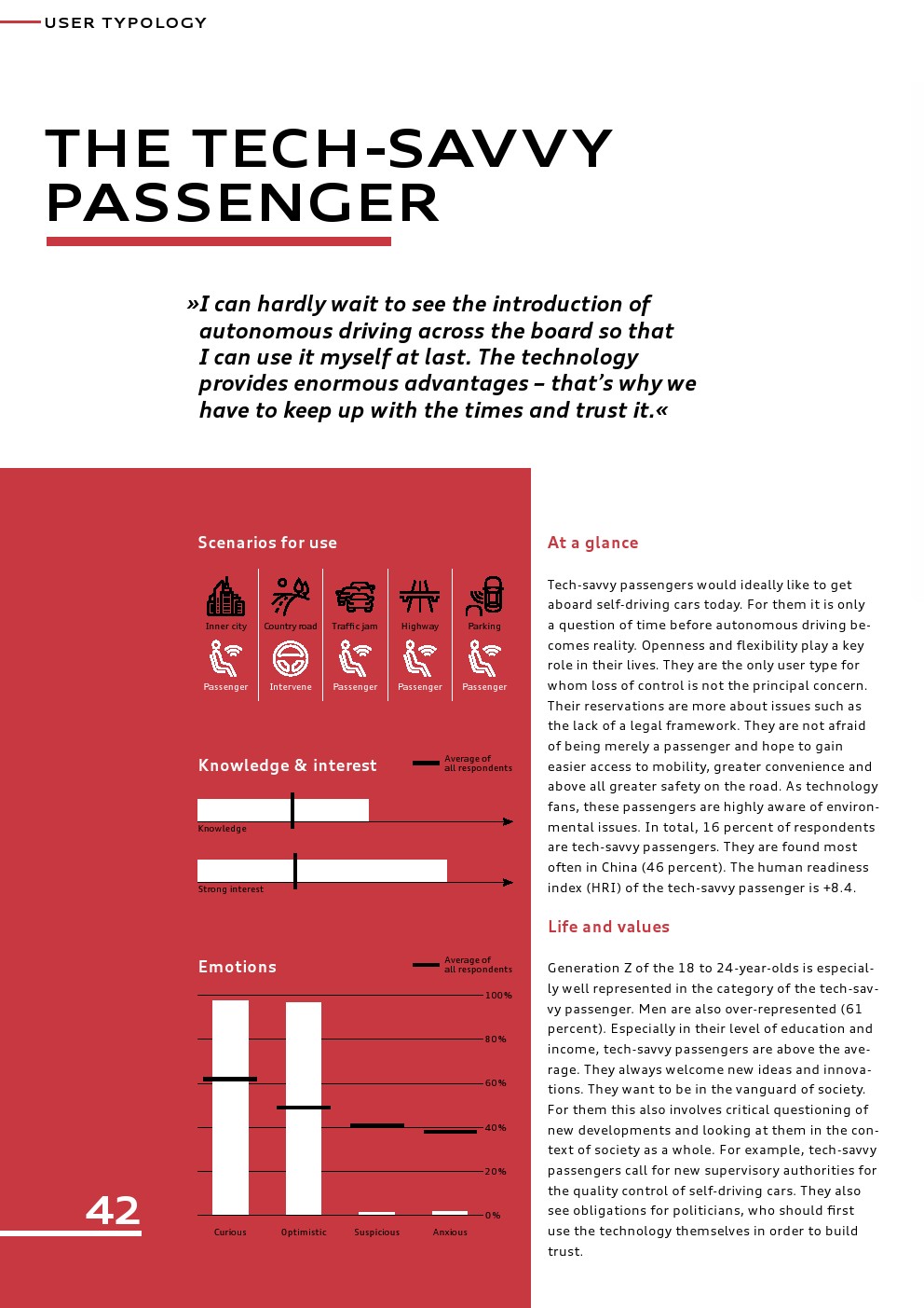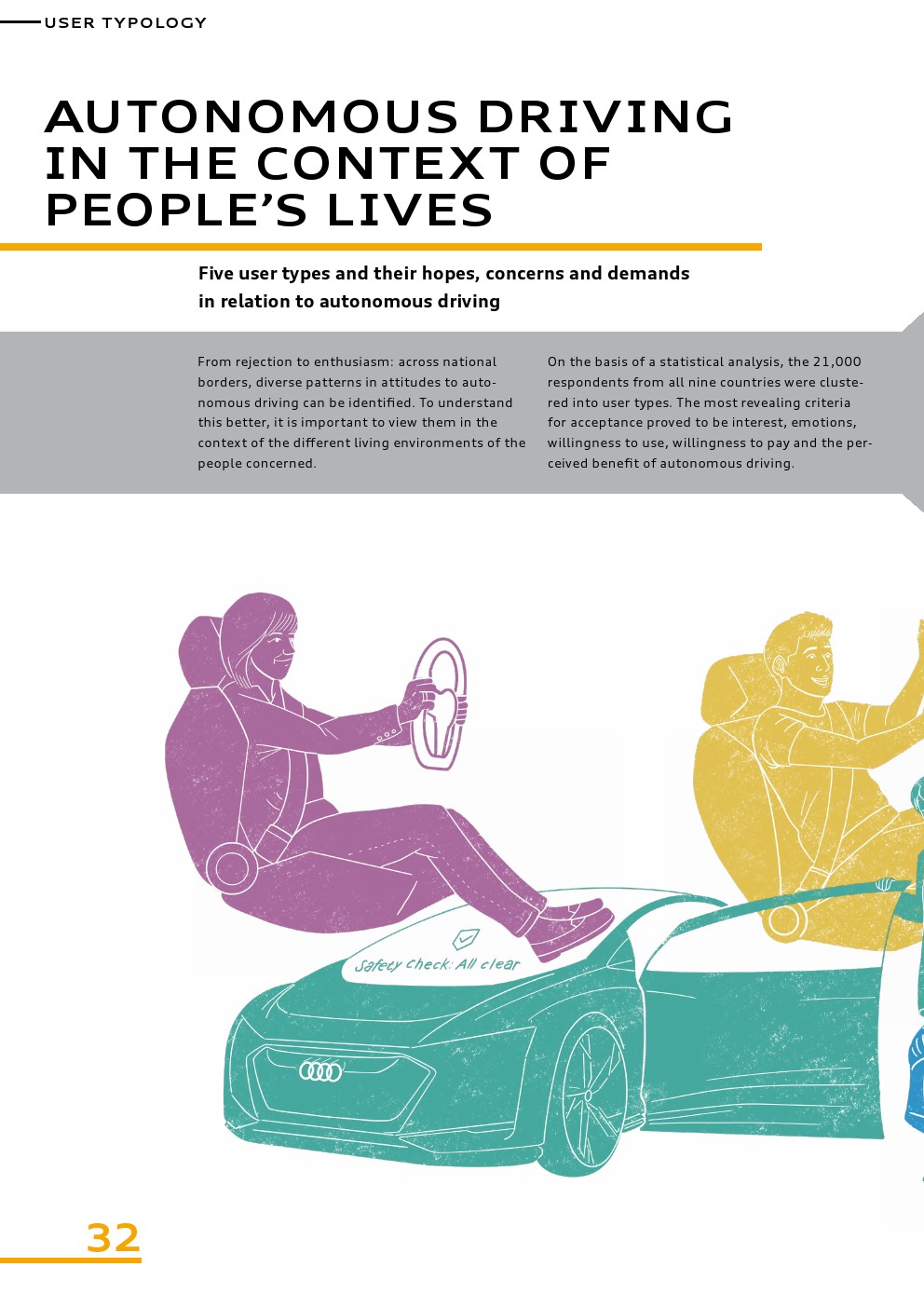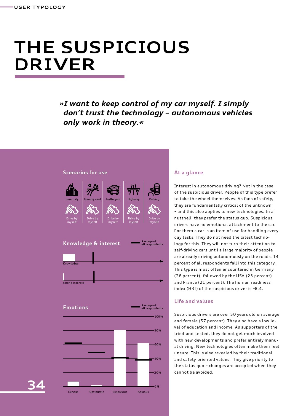 用户类型考察了在生活背景下人们对自动驾驶的态度,这种方法引申出五种用户类型: