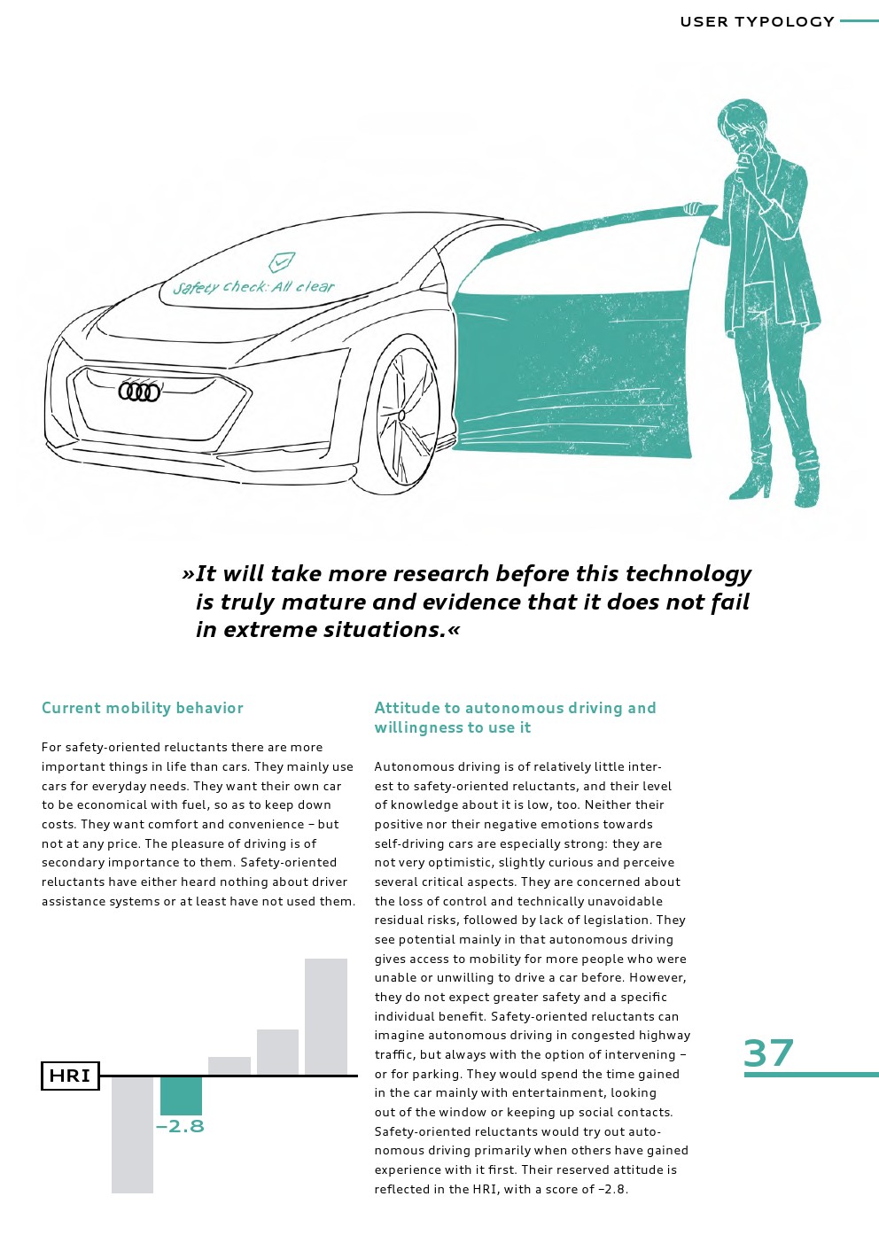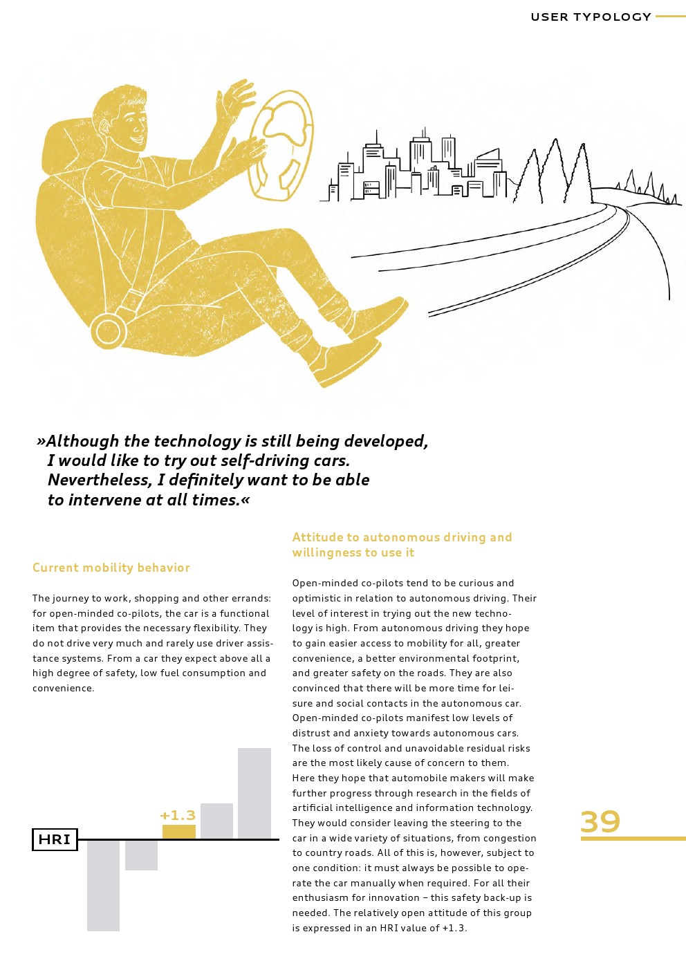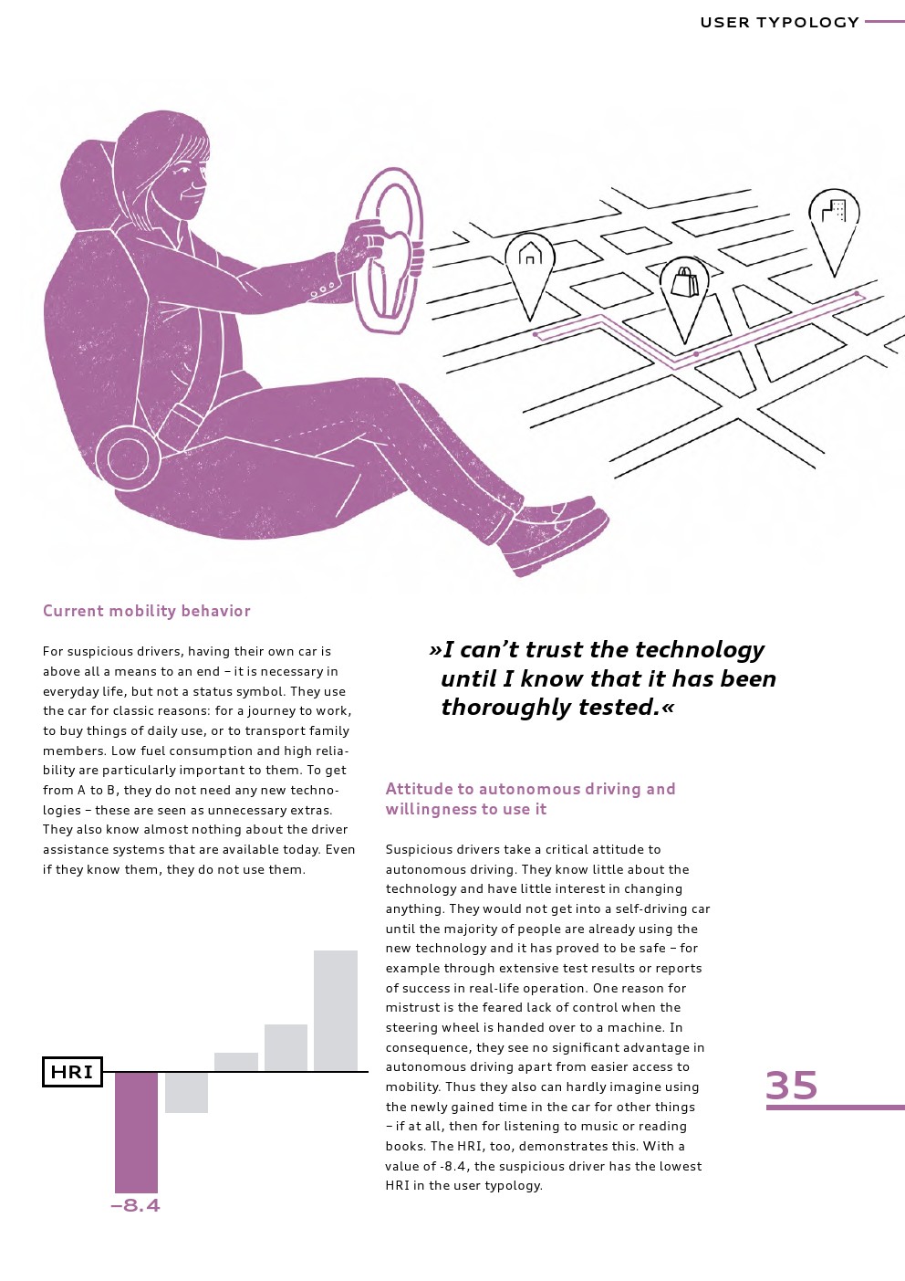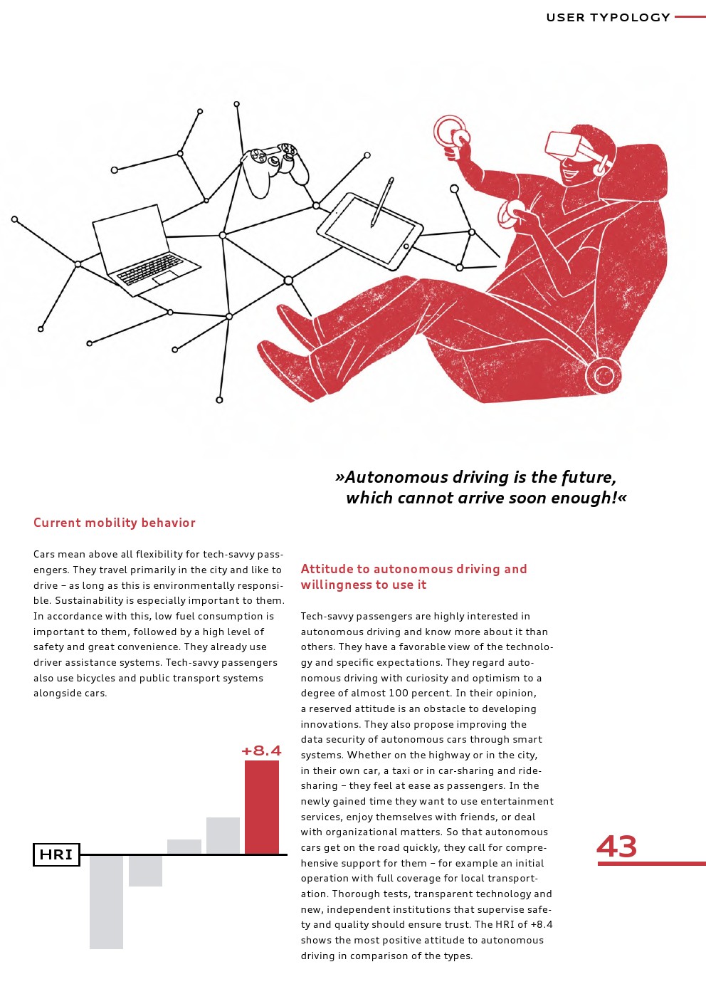 用户类型考察了在生活背景下人们对自动驾驶的态度,这种方法引申出五种用户类型: