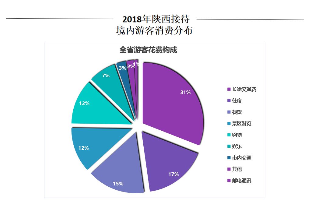 从接待游客花费构成可以看出,来陕旅游的游客花费最高项目位长途交通,在旅游吃住行娱购里,娱和购两大方面游客花费较低,旅游市场并未刺激到游客的消费欲望,也暴露出陕西省旅游创收能力的短板。