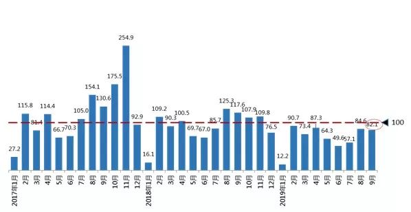 2019年9月份入店分指数为82.4,预计消费者在10月份入店看车意愿提高。