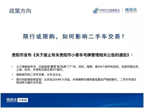 政策方向:汽车限购政策逐渐“解禁”或“松绑”,外埠牌照车辆限行条件更加严格,二手车市场或迎来外迁小高峰。