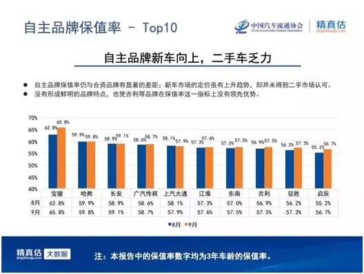 自主品牌保值率仍与合资品牌仍然有着显著的差距。