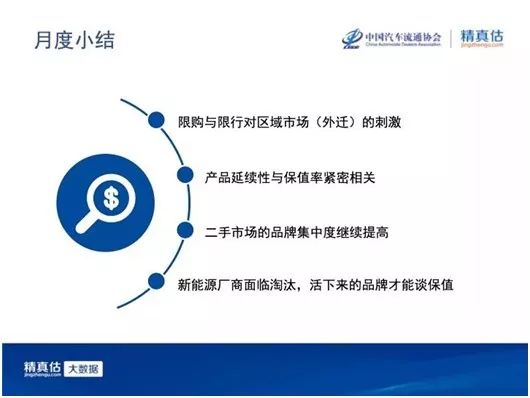 限购政策的“解禁”或“松绑”、限行条件更加严格对于区域市场的二手车外迁有着一定的刺激作用,或带来一阵二手车外迁小高峰。新车命名吸引眼球,产品延续性是关键,定价和命名都会对保值率产生影响。合资品牌集中度继续提高,优势富集效应明显,二手车交易量将会集中到一些保值率较高的品牌上。保值率较高的新能源车,同样需要产品的“延续性”。目前一些新势力厂商面临融资、交付等等各方面困难,先要活下来才能谈保值。