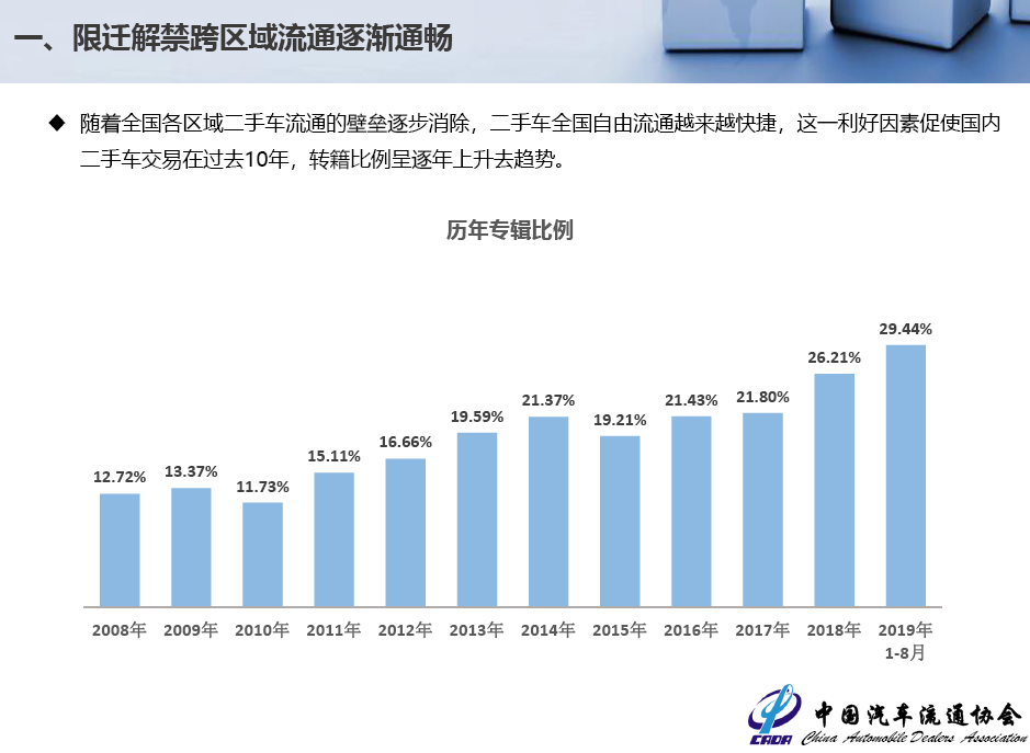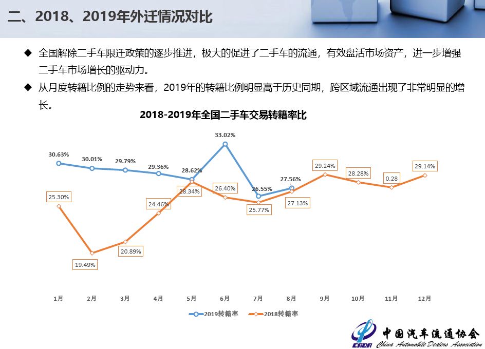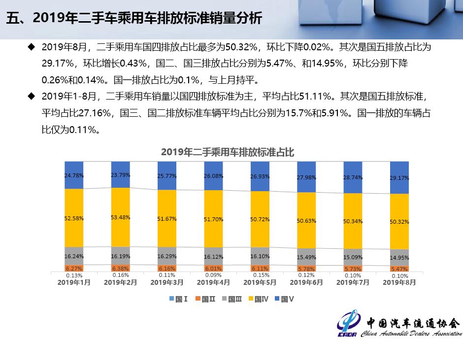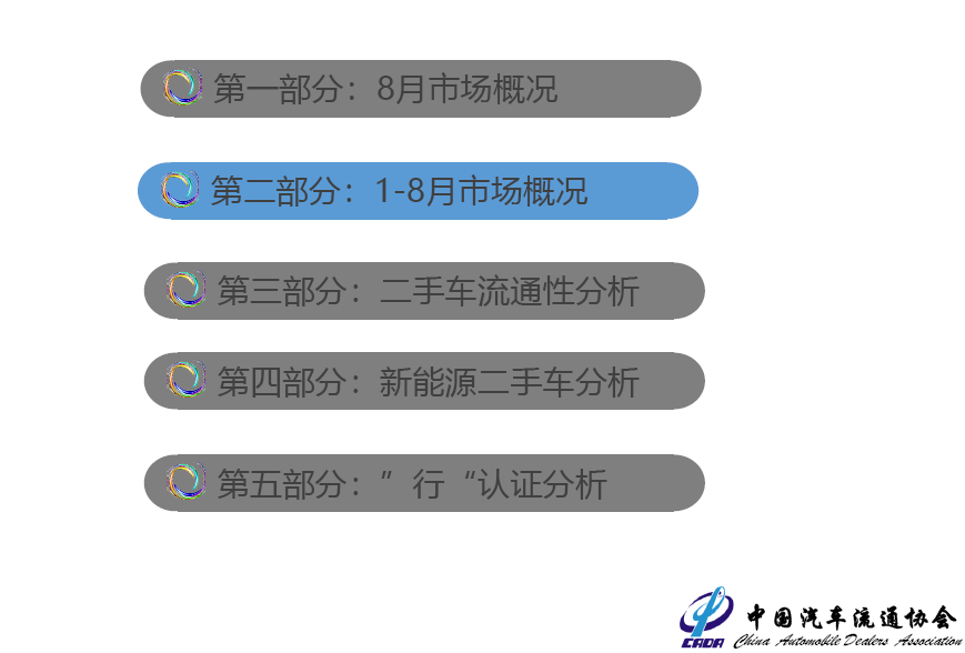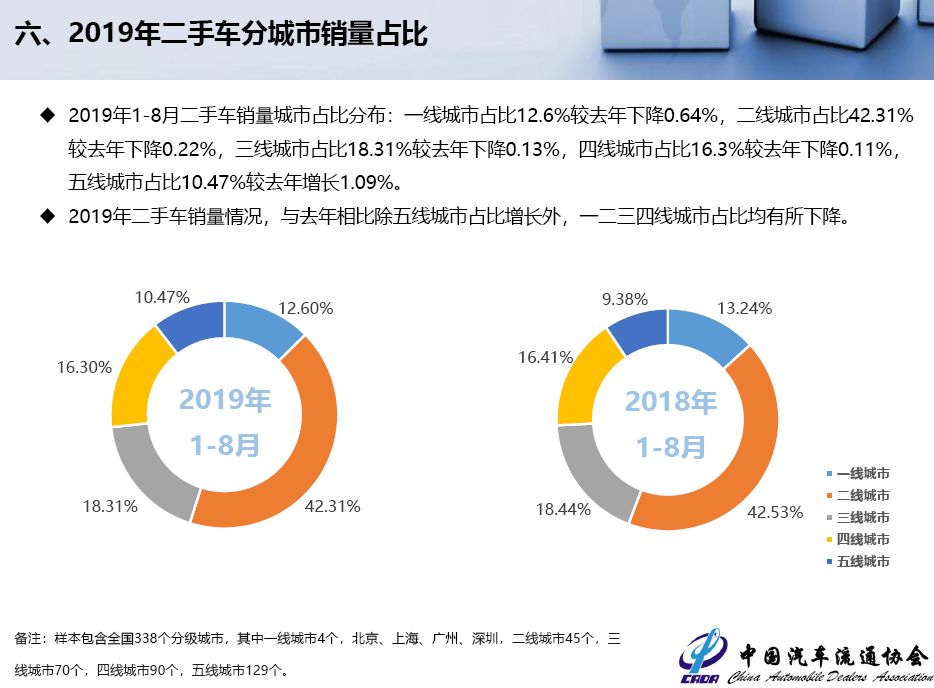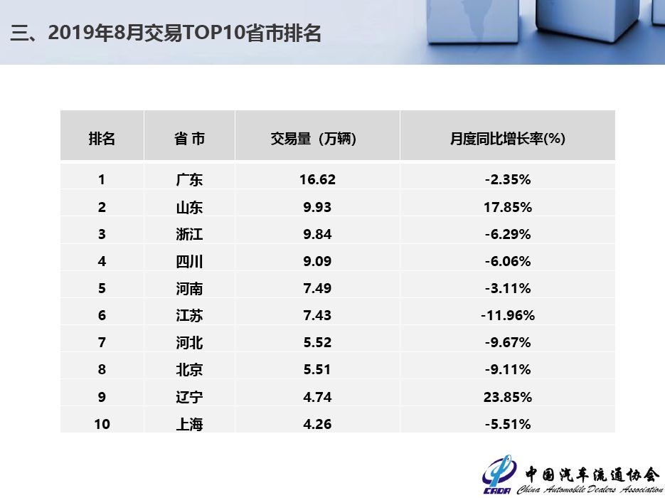 中国汽车流通协会:2019年8月全国二手车市场分析 导读:2019年8月全国二手车市场交易量119.86万辆,交易量环比下降1.19%,同比增长0.92%,较7月份增速明显减弱。2019年新车市场呈现同比负增长态势,二手车市场增速明显减缓,行业整体进入新的调整期。具体分析如下: 更多阅读:中国汽车流通协会:2018年6月全国二手车市场分析中国汽车流通协会: 2018年全国二手车市场分析中国汽车流通协会:2018年8月二手车市场分析中国汽车流通协会:2019年2月份全国乘用车市场分析中国汽车流通协会:2018年9月份全国乘用车市场分析中国汽车流通协会: 2019年7月二手车市场分析中国汽车流通协会:2019年8月二手车市场分析中国汽车流通协会:2019年1月二手车市场分析中国汽车流通协会:2020年1-2月二手车市场分析中国汽车流通协会:2020年11月份全国乘用车市场分析中国汽车流通协会:2019年11月份全国乘用车市场分析中国汽车流通协会:2020年2月份全国乘用车市场分析中国汽车流通协会:2020年3月份全国乘用车市场分析中国汽车流通协会: 2020年5月份全国乘用车市场分析中国汽车流通协会:2019年6月份全国乘用车市场分析