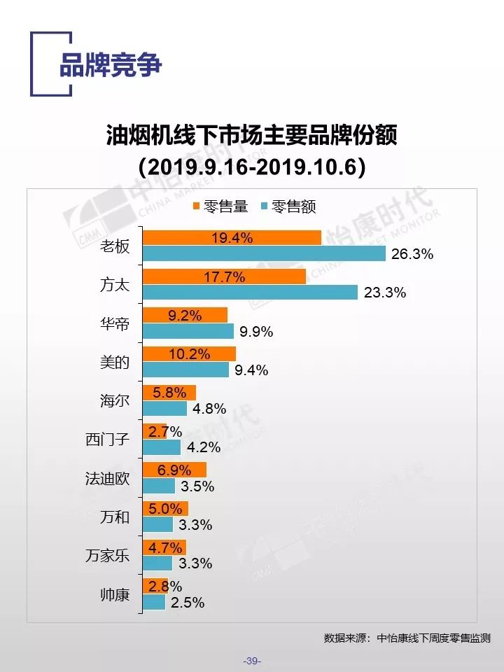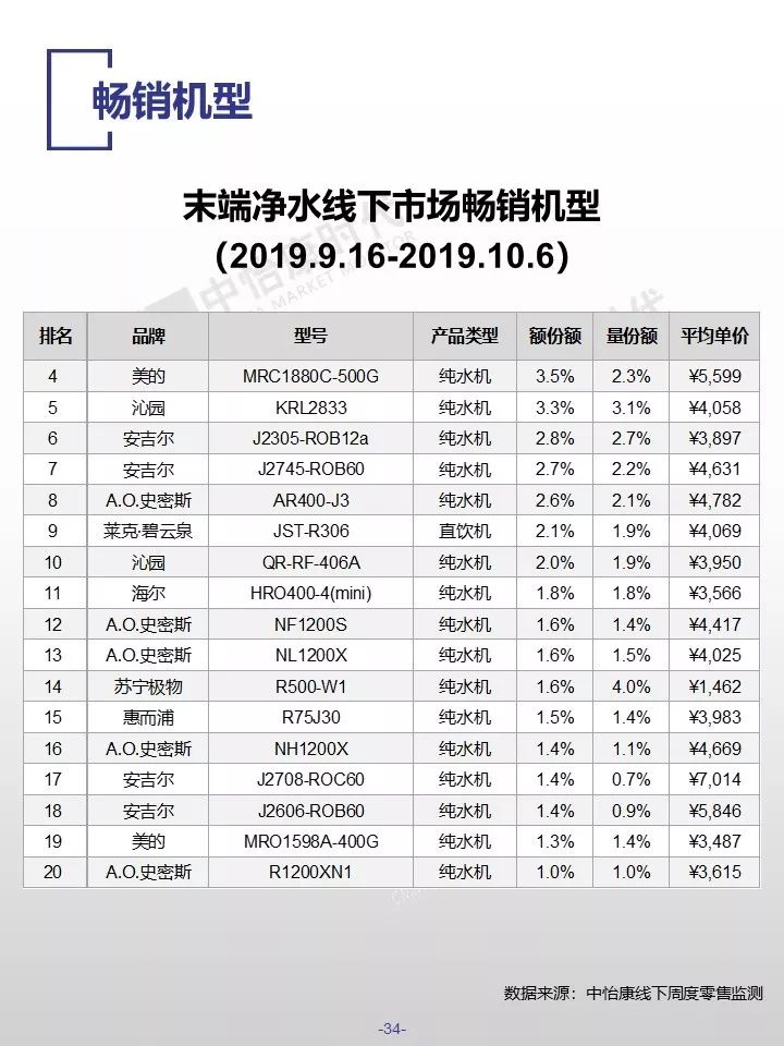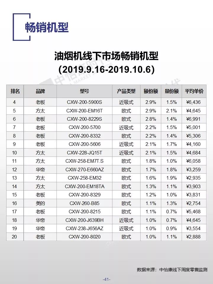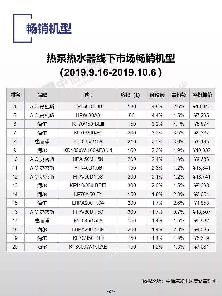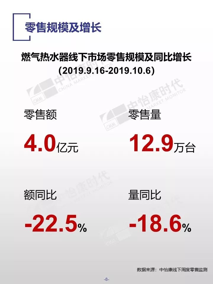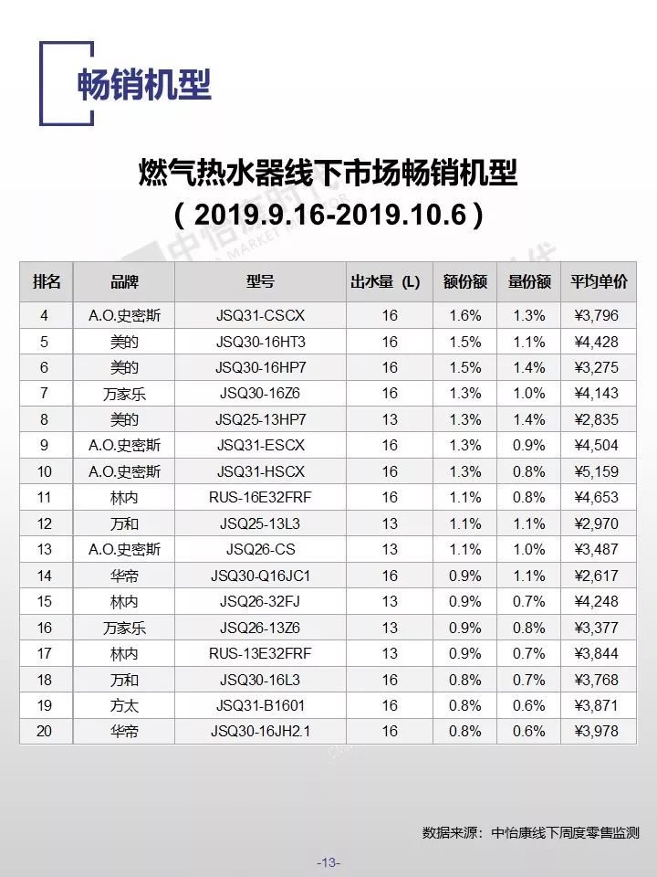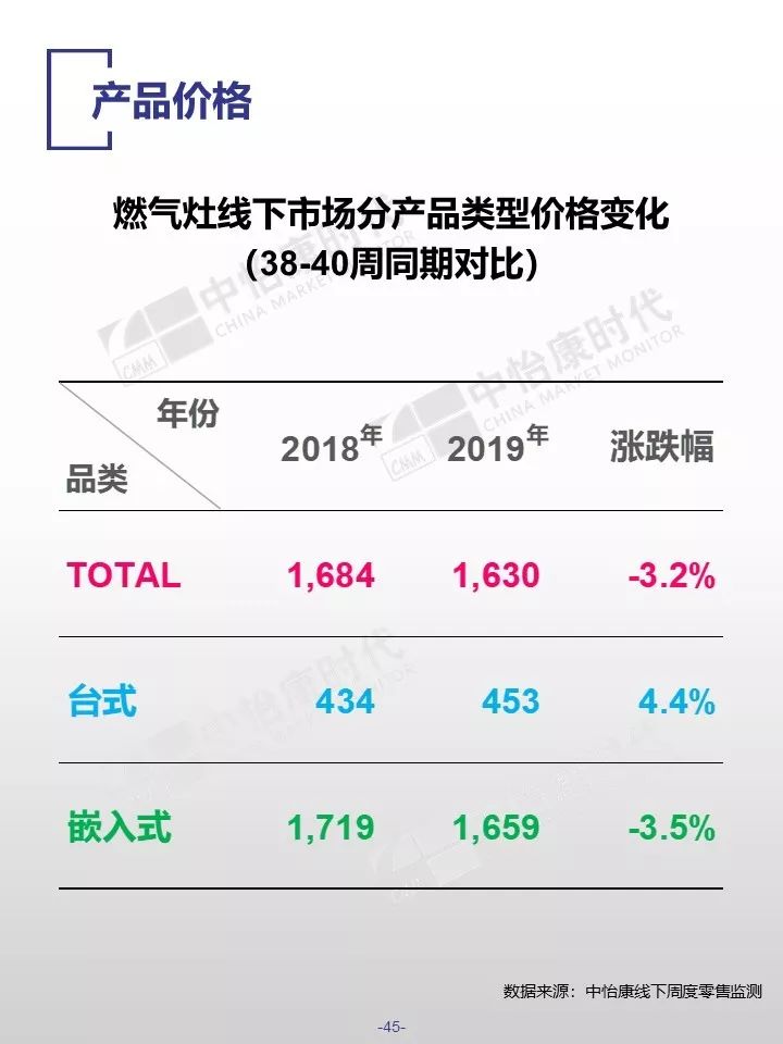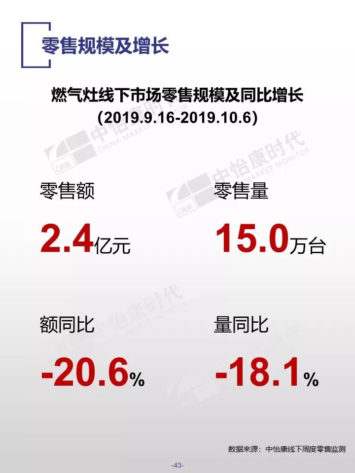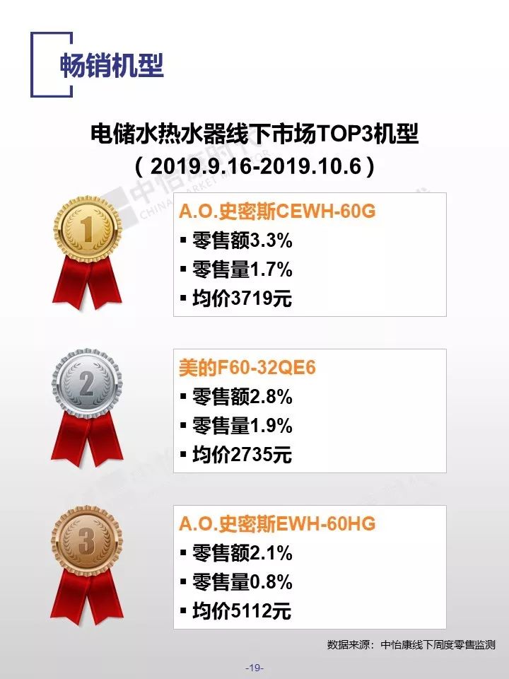 在销售规模方面,中怡康监测范围内,38-40周,燃气热水器/电储水热水器/热泵热水器/末端净水/吸油烟机/燃气灶3周零售量,分别为12.9万台,15.4万台,0.3万台,6万台,15万台和15万台。在销售均价方面,一些品类的产品均价仍保持增长,如50L电储水式热水器、80L热泵热水器、净水机等。