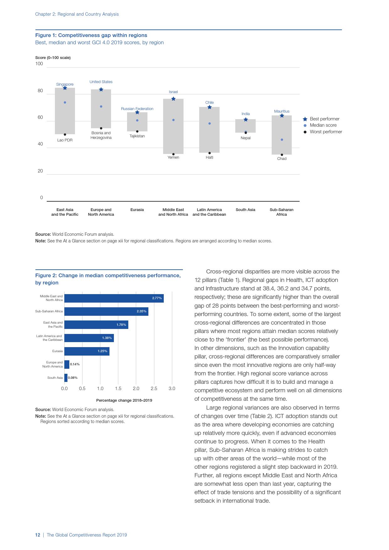 世界经济论坛的《全球竞争力报告》于1979开始发布,对推动生产力和长期经济增长的各项动力进行年度评估。评估的基础是“全球竞争力指数”(GCI),该指数通过12项支柱下的103项指标,对141个经济体的竞争力状况进行分析。每项指标采取0-100分的计分制度,可以展示一个经济体距离理想状态或者“满分”竞争力之间的差距。