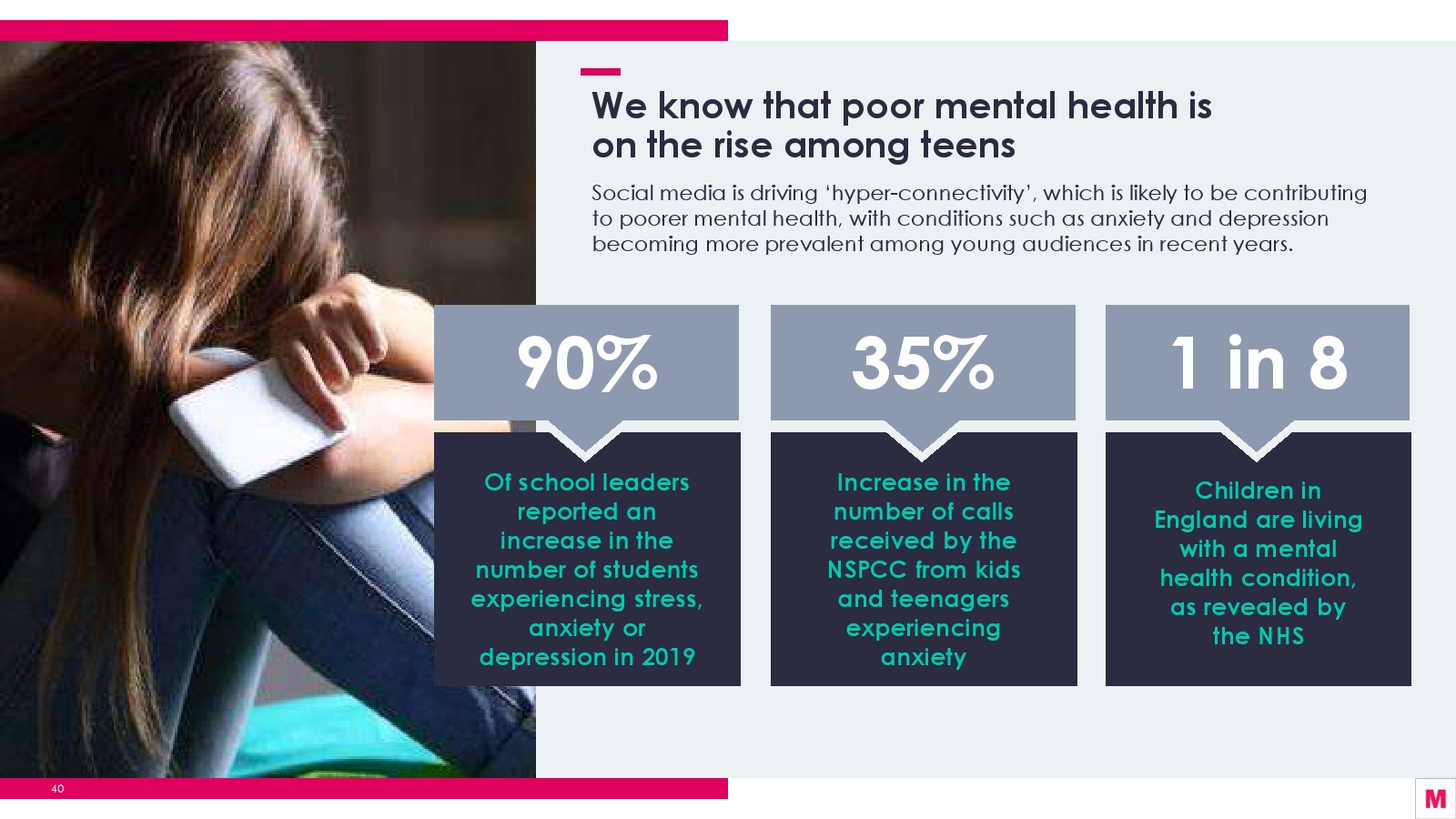 根据NHS,儿童和青少年的心理健康问题正在上升,越来越多的证据表明社交媒体在其中起到了一定的负面影响。许多青少年可能会以积极的方式使用社交平台,但是我们不能忽视在线可能造成的损害。
