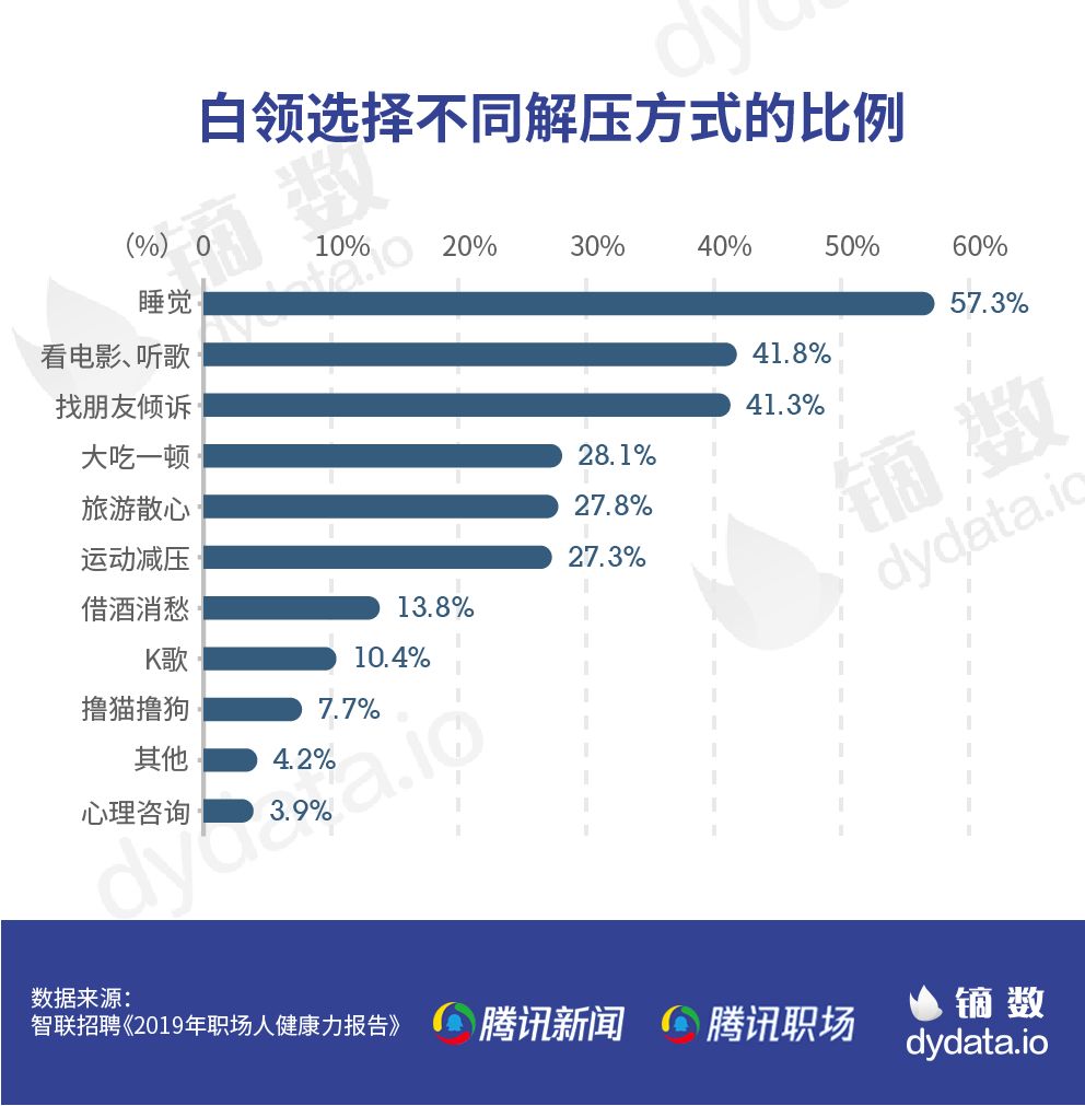 根据数据显示,57.3%的白领选择睡觉的方式解压,41.8%的白领选择看电影、听歌,41.3%的白领选择和朋友倾诉。无论是什么方式,只要能够释放心里的负面情绪都是有价值的。
