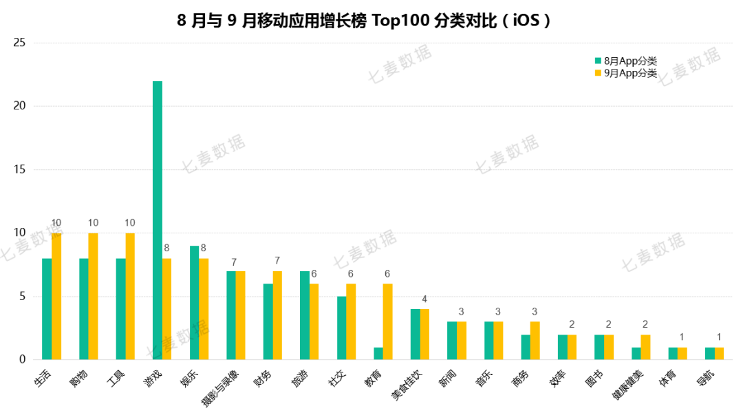 本次榜单中,生活、购物、工具类产品数量均有所上升。