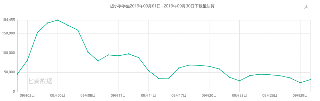 上榜的 5 款产品中,一起小学学生表现最好,七麦数据检测到,一进入九月,这款产品的下载量就呈现了明显的上升趋势。这是一款可以批改作业、强制设置使用时长的产品,深得用户喜爱。