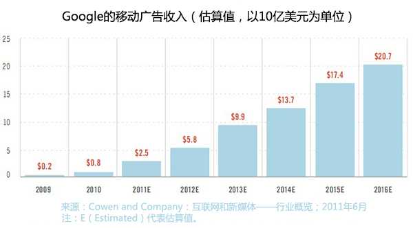 仅3年内,搜索引擎巨头Google的移动广告收入预计将超过200亿美元,这一数据比它在2011年的移动广告收入多出近10倍。