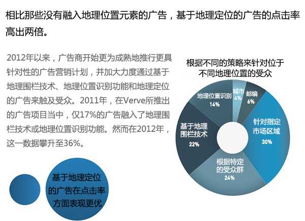 调查报告指出,相比那些没有融入地理位置元素的广告,基于地理定位的广告的点击率高出两倍。