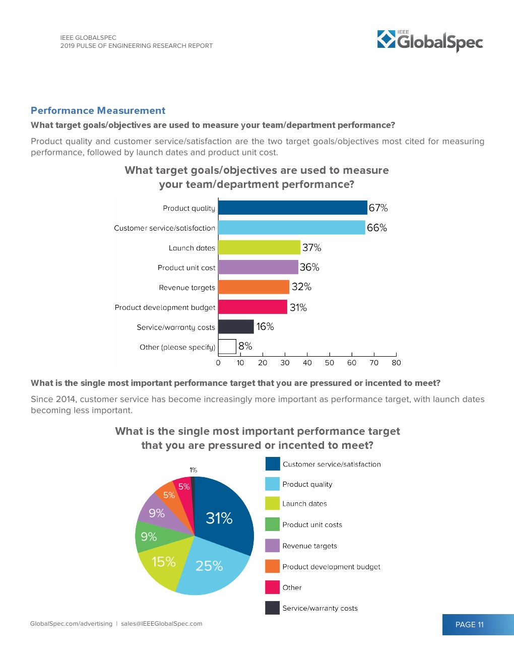 客户服务作为一项绩效目标变得越来越重要。而工程师最有可能达到产品质量性能目标。