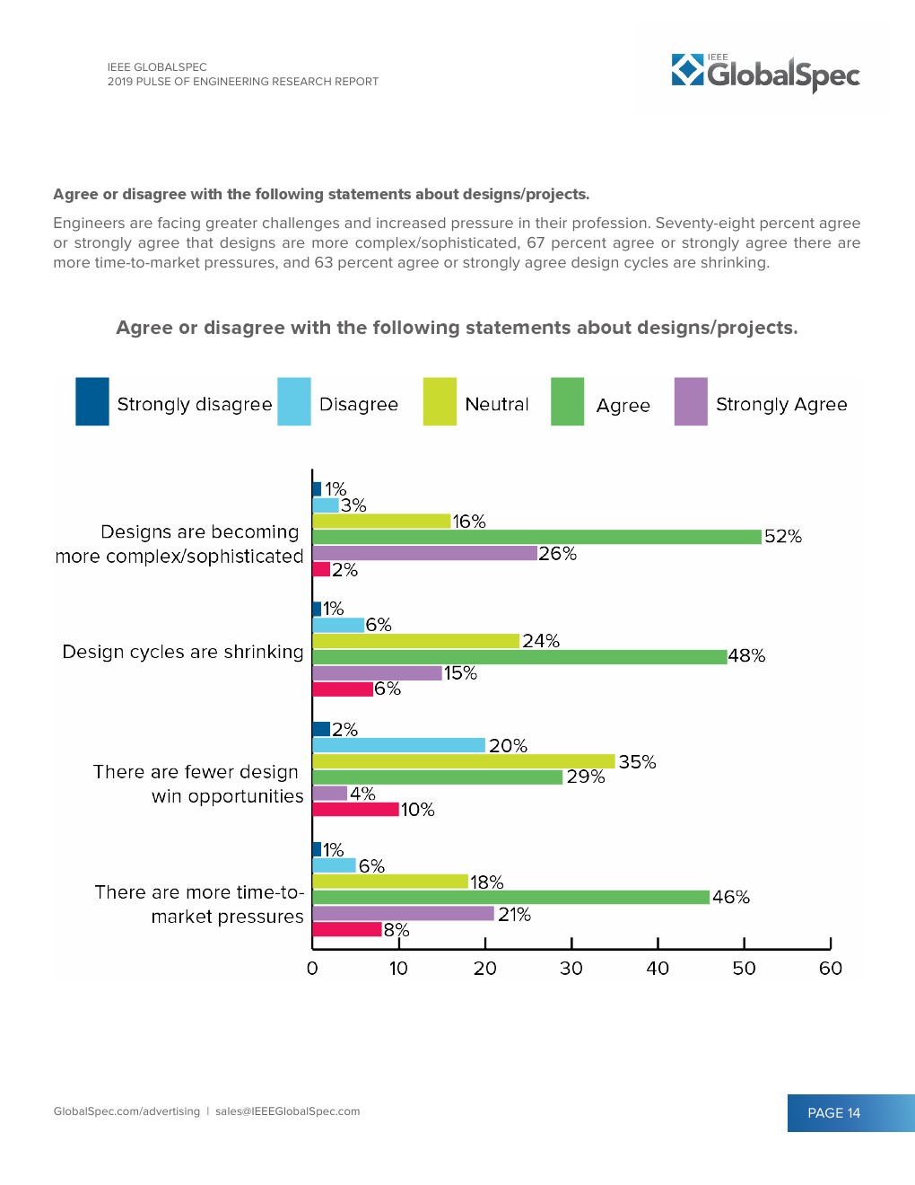 绝大多数工程师报告说,设计更复杂、上市时间压力更大、设计周期正在缩短。