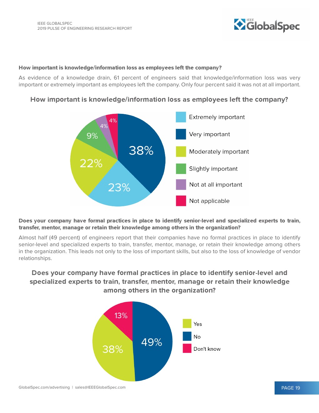 知识和信息流失是工程界日益关注的问题。近一半的受访者表示,他们的公司没有正式的政策来保存知识。
