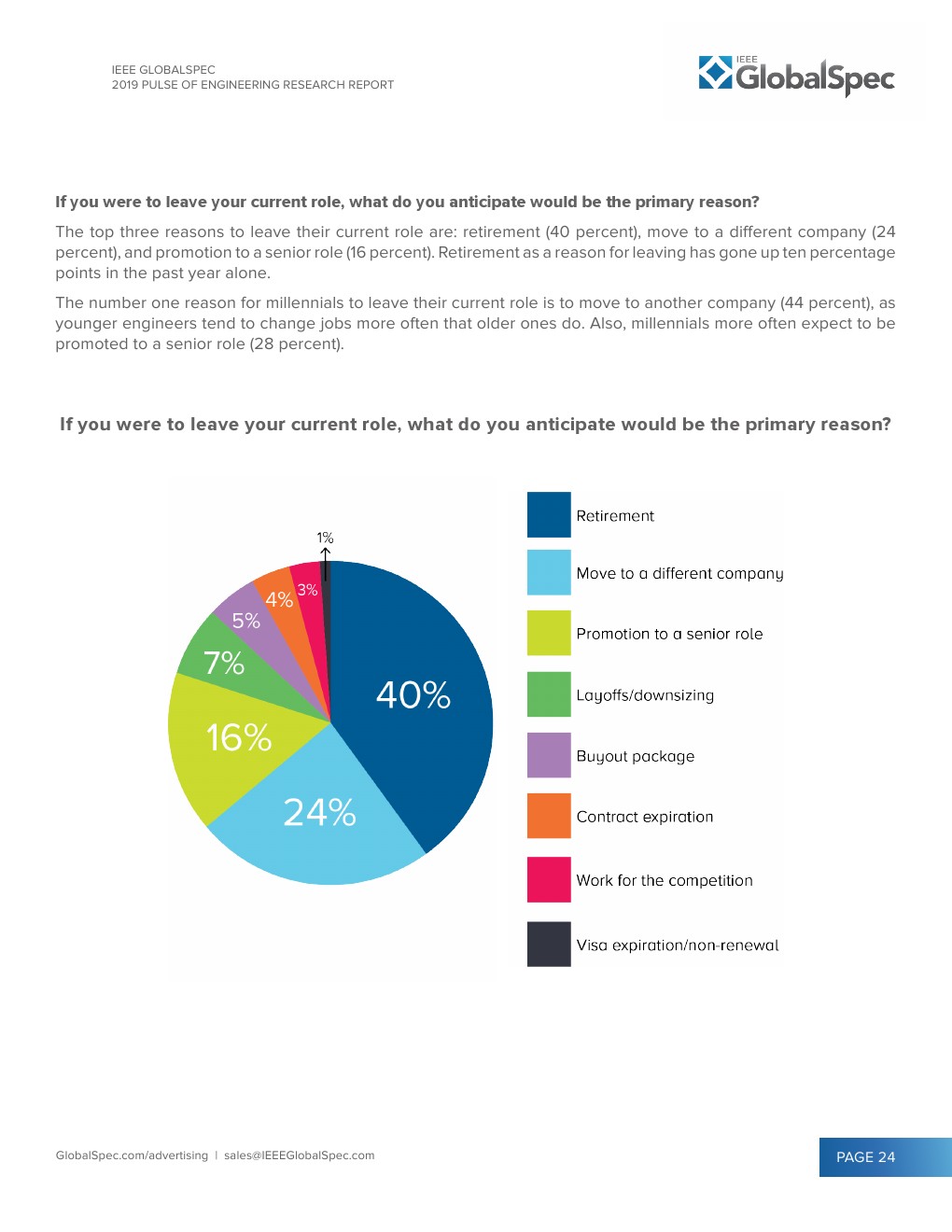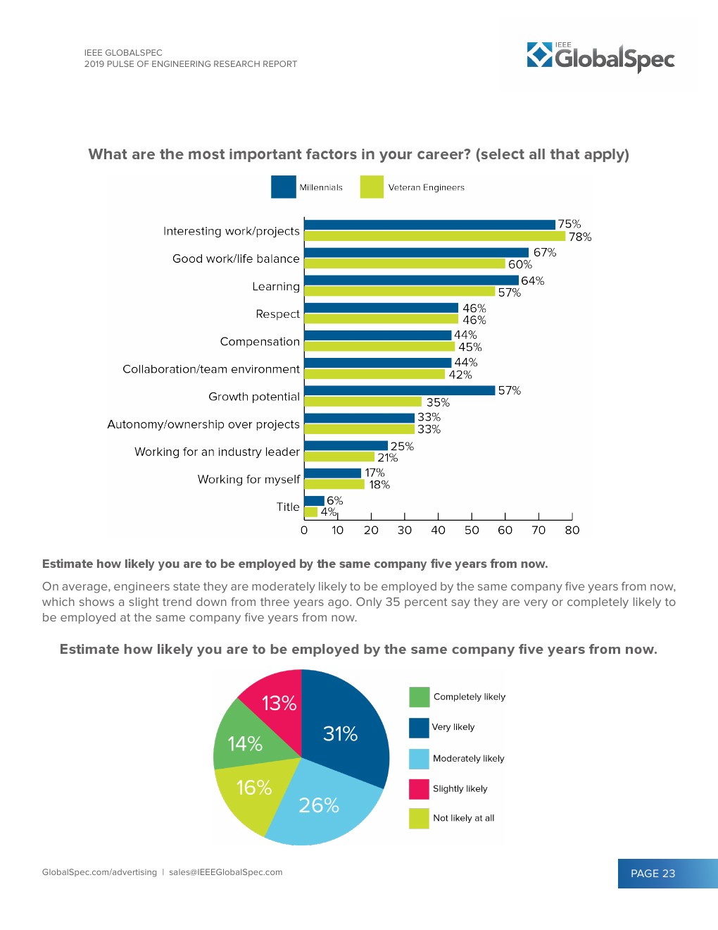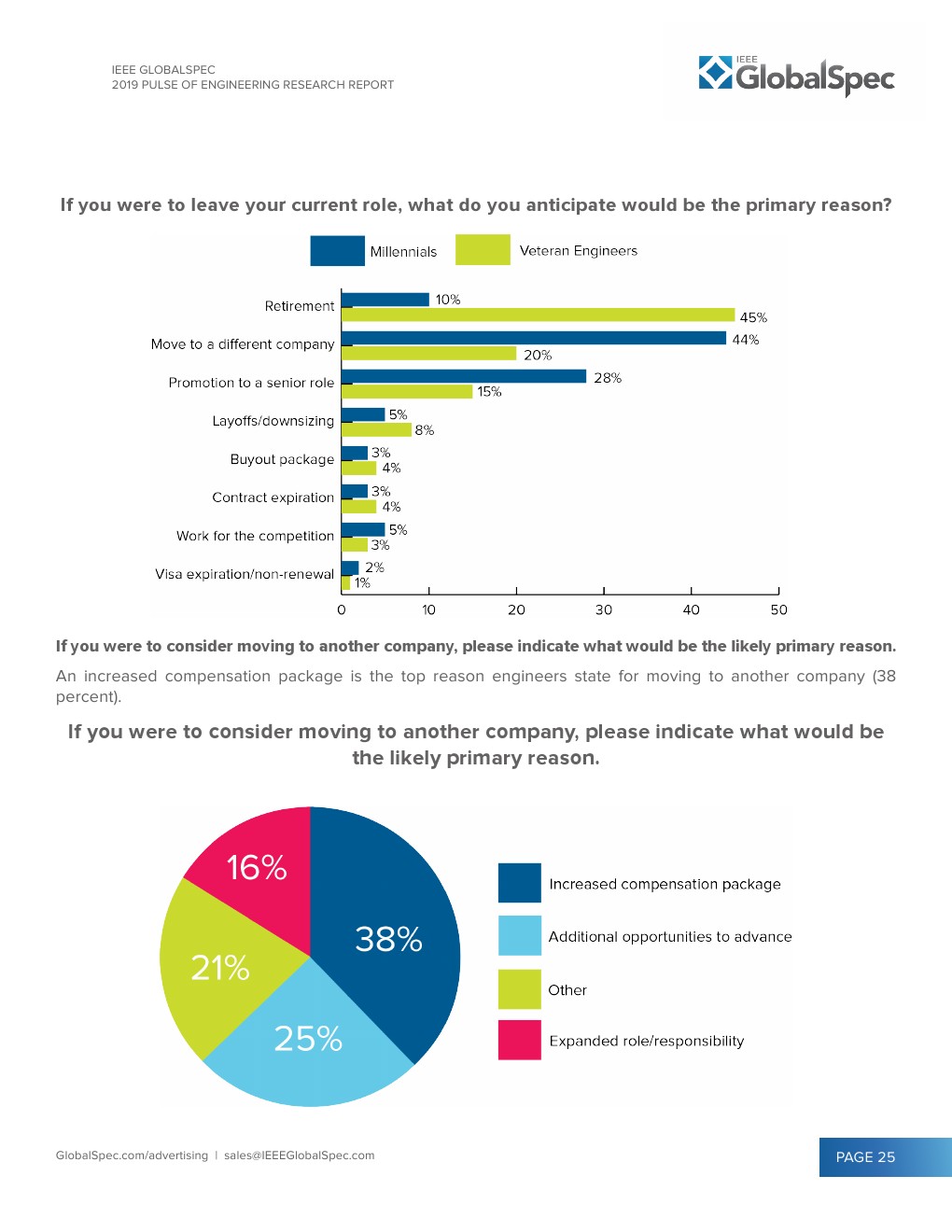 比起过去,预计五年后会有更少的工程师在目前的位置上工作。最主要的原因包括退休、转到另一家公司,以及晋升到高级职位。