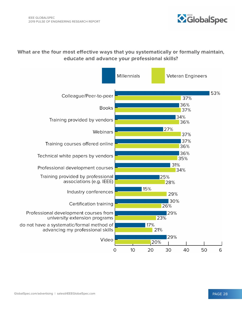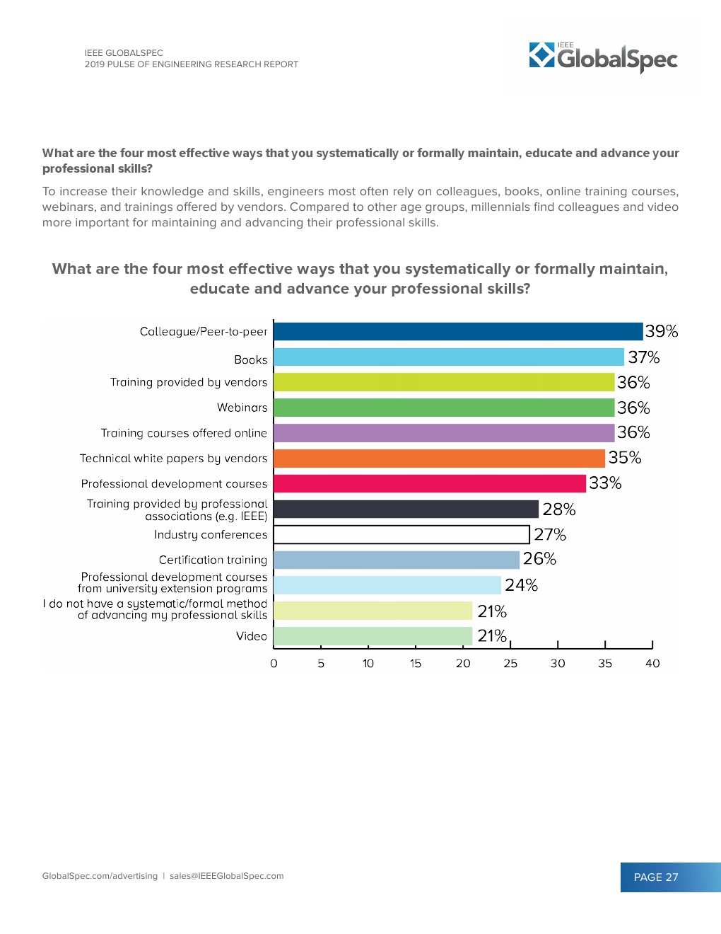 工程师利用同事、书籍、在线培训课程、网络研讨会和供应商提供的培训来维护和提高其专业技能。