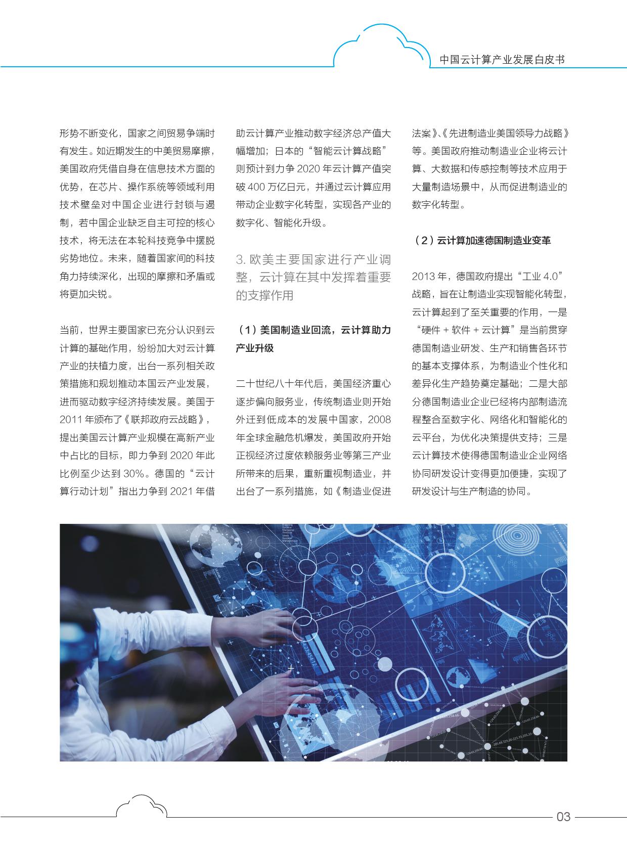 在欧盟,以德国为例,在德国制造业转型升级的过程中,云计算起到了至关重要的作用,赋能新型制造系统改变既有生产方式,大幅提升了德国制造业的生产效率,从而带动德国制造业价值链升级。