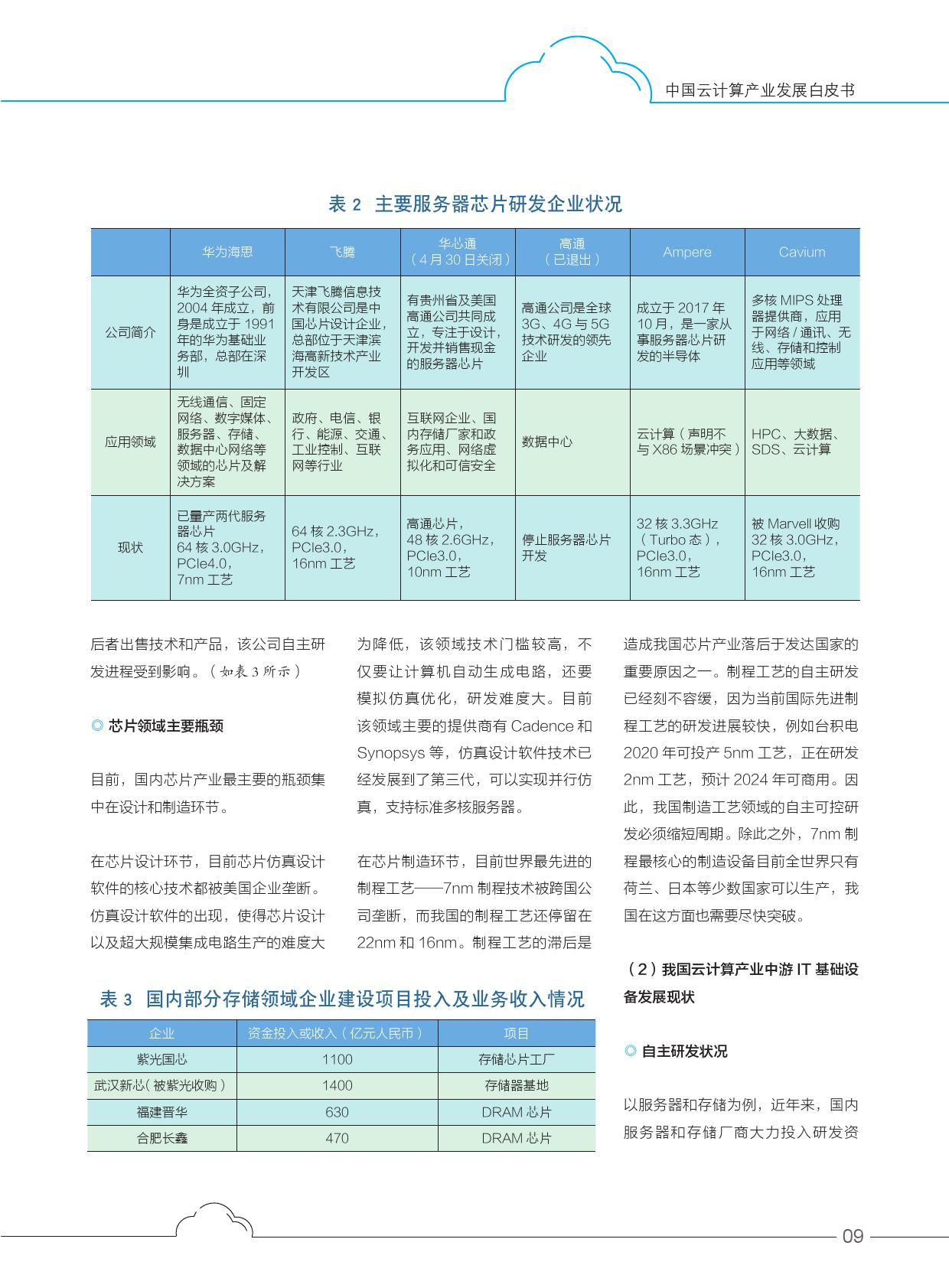 上游核心硬件方面,在云计算领域,芯片产业仍是重中之重,处于云计算产业的上游位置,芯片的研发力直接影响着云计算产业的发展水平。而囿于我国芯片产业整体发展较为薄弱的境况,我国云计算产业上游芯片的自主研发能力与发达国家相比仍有一定差距。这里的芯片包括服务器芯片和存储芯片。我国服务器芯片自主研发主要有以下几种方向:Alpha架构、ARM架构、MIPS架构、X86架构、Power架构,涌现出基于MIPS的龙芯、基于X86的兆芯、基于ARM的天津飞腾和华为鲲鹏920以及基于Alpha架构的成都申威等.基于精简指令集(RISC)原则的开源指令集架构RISC-V也获得众多国内科技公司的关注。