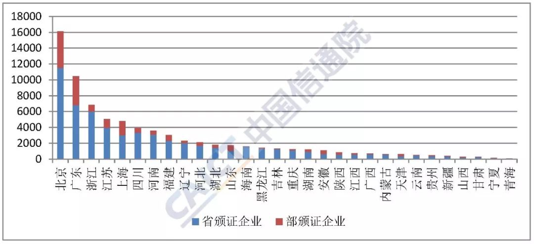 在57182家本地企业中,北京11516家,广东6787家,浙江5983家,北京、广东、浙江三地的增值电信企业数量在全国遥遥领先,接下来依次是江苏、四川、上海等6地集中了全国60.4%的增值电信企业,西部12省份的增值电信业务经营者仅占全国的13.4%。