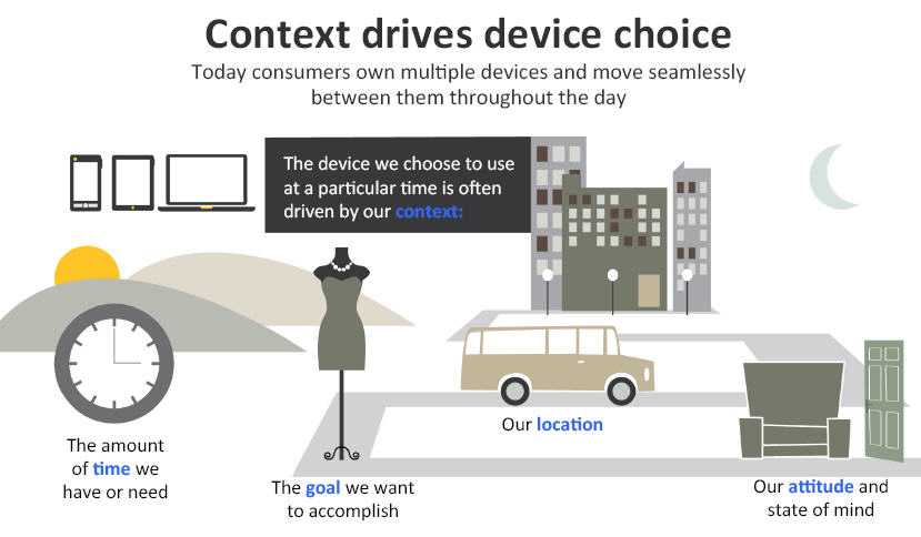 - 人们所处的情境决定了他们会使用哪种屏幕设备:在哪里,想干什么,有多少时间;