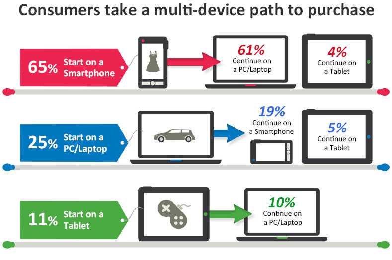– 65%的人从智能手机开始,其中61%的人在笔记本电脑和台式电脑上完成购物,4%在平板电脑上完成购物;