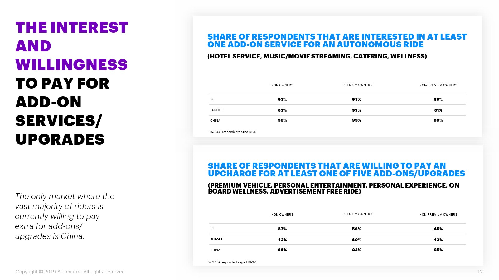 调查结果强调了对自动驾驶附加服务的强烈需求。89%的受访者对这些服务感兴趣,18至37岁的受访者中有97%对这些服务感兴趣。