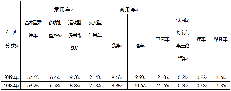表1.2019年、2018年1-9月车型交易量占比