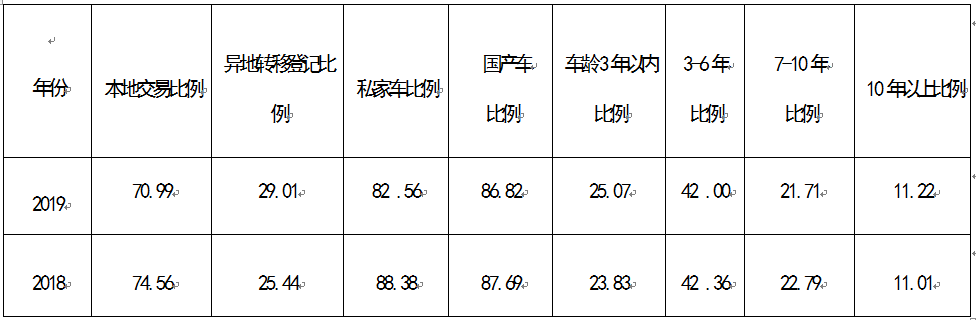 表2.2019年、2018年1-9月二手车交易类型占比