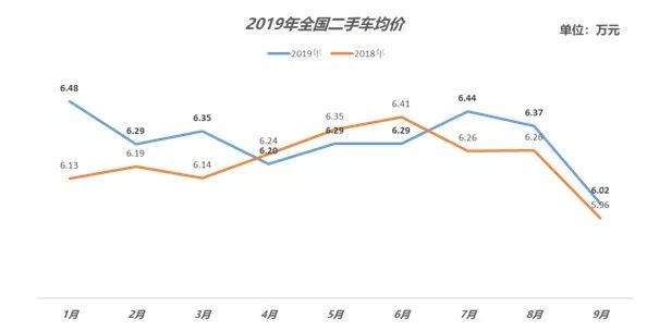 图5. 2019年、2018年各月二手车均价