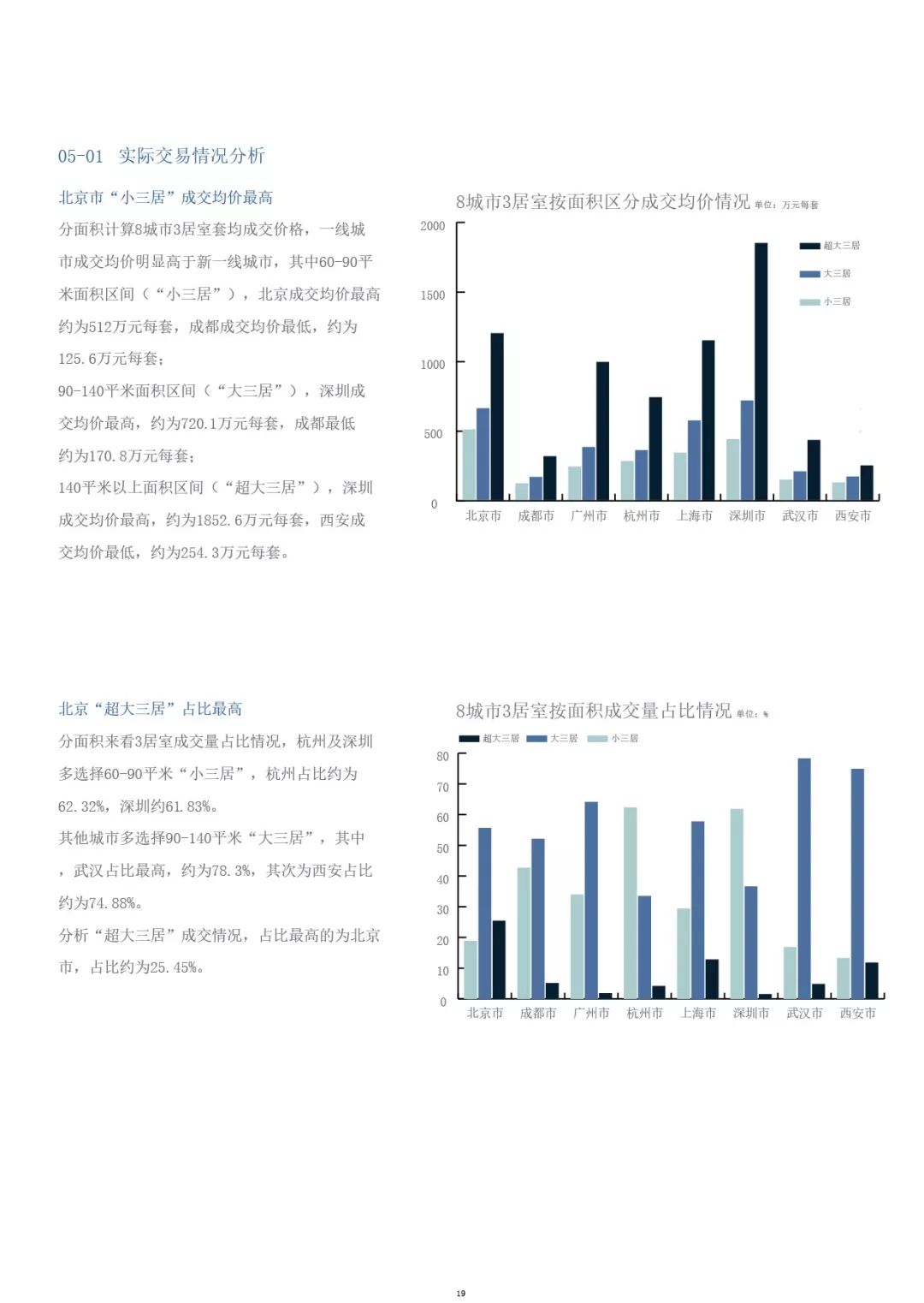 贝壳大数据:2019理想三居报告 最近,在贝壳找房发起的理想居室大调查中,47.97%的受访者表示三居室是最理想的居住状态。于是,我们筛选了北京、上海、广州、深圳、成都、武汉、杭州、西安等8个核心城市进行研究,并发布了《2019理想三居报告》(以下简称《报告》)。 从中我们发现普遍是理想丰满,现实骨感。各城市两居室的二手房交易量都高于三居,其中杭州二、三居的成交量最接近,而北京的差异最大。 同时,想要一套三居室,平均要三十而立以后才能实现,其中,北京三居购房者年龄最大,约为36岁,换房一族更是达到39岁;杭州最年轻,约为32岁。而从房价收入比来看,深圳实现理想三居最难,90-120㎡的房子全款需要40年,贷款也要9年,而成都只需要8.6和2.6年。 抛开面积谈理想三居就像撇开剂量谈毒性一样,都是耍流氓。在贝壳找房APP上搜索三室的房子,小到三四十平,大到三五百平,一应俱全。但确认过眼神,那未必是你理想的房。对小编来说,如何将迷你三居住得舒适可能得苦思冥想,而要住进超大三居则更多是痴心妄想了。 那么,多大面积才算理想呢?贝壳调查显示,近六成的人选择100-120㎡的三居室。从《报告》上看,上海、西安、北京、武汉、成都等5个城市的成交三居套均面积处于理想区间,其中,上海和西安最高,达到114㎡。而广州和深圳则小于100㎡,尤其是深圳,成交三居套均面积只有91㎡,且超六成交易集中在60-90㎡之间的“小三居”。 更多阅读:IT时报:零跑、哪吒隐隐挑战“蔚小理” 截至8月蔚来2022年累计交付量为71556辆车2023年11月中国新势力车企销量分化明显 仅理想Q3盈利28亿2024年4月奔驰销量6.09万辆 同比下滑8.6%威马汽车:2021年威马汽车亏82亿元 创始人沈晖年薪12亿元JD Power:比亚迪与理想以74.9%的保值率并列2023年中国汽车保值率第一乘联会:2023年11月中国占世界新能源车份额68%理想:2023年5月理想交付28277辆 同比增长146%乘联会:2023年8月新能源车销量比亚迪274,386辆位列第一理想汽车:2022年10月理想交付10052辆汽车 同比增长31.4%理想:2023年4月第四周理想周销量共计超过8100辆理想1.26万辆位列新一周新势力销量排行榜第一品驾:2022年6月造车新势力数据盘点 小鹏汽车交付量为15295辆赛博汽车:2022年8月比亚迪单月销量达到17.5万辆 哪吒零跑力压蔚来小鹏2022年3月造车新势力数据盘点 小鹏汽车交付量达到15414辆再次成为月度销冠乘联会:2022年国产造车新势力集体难过二月关