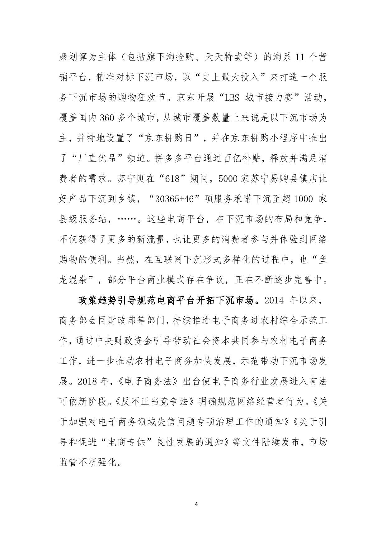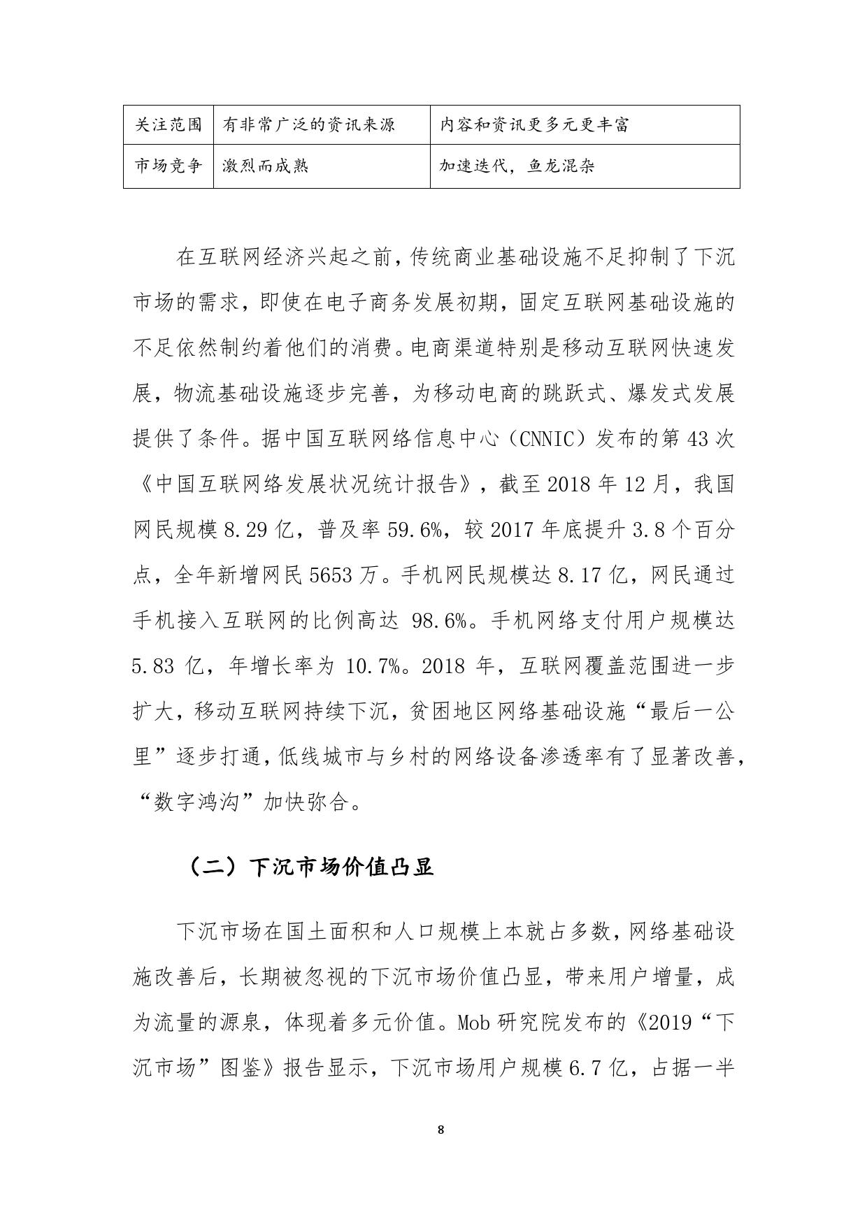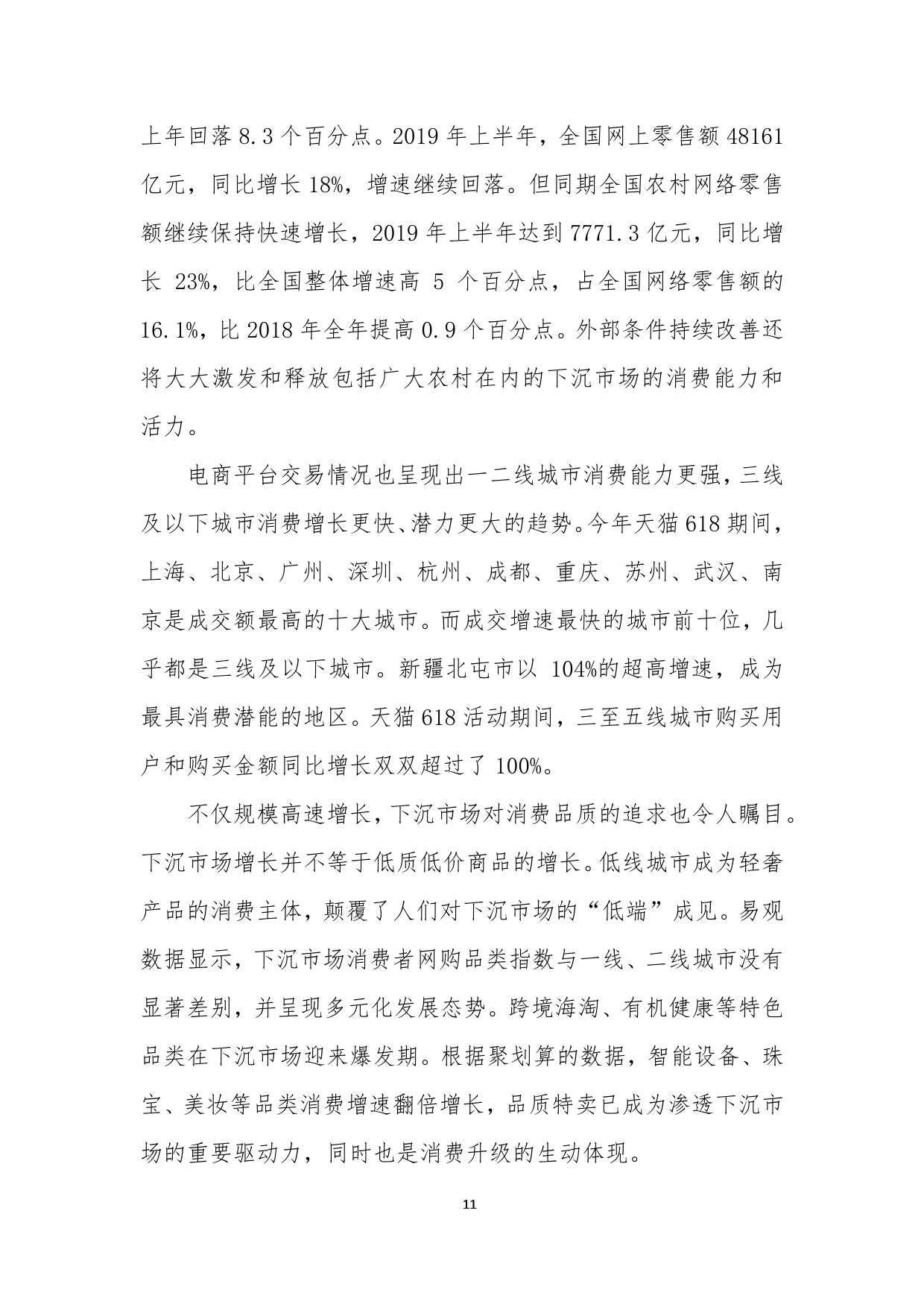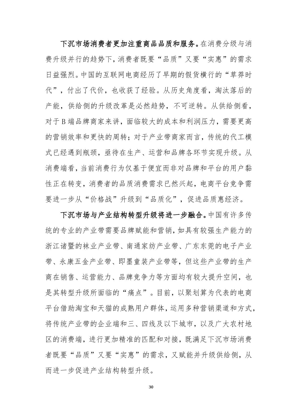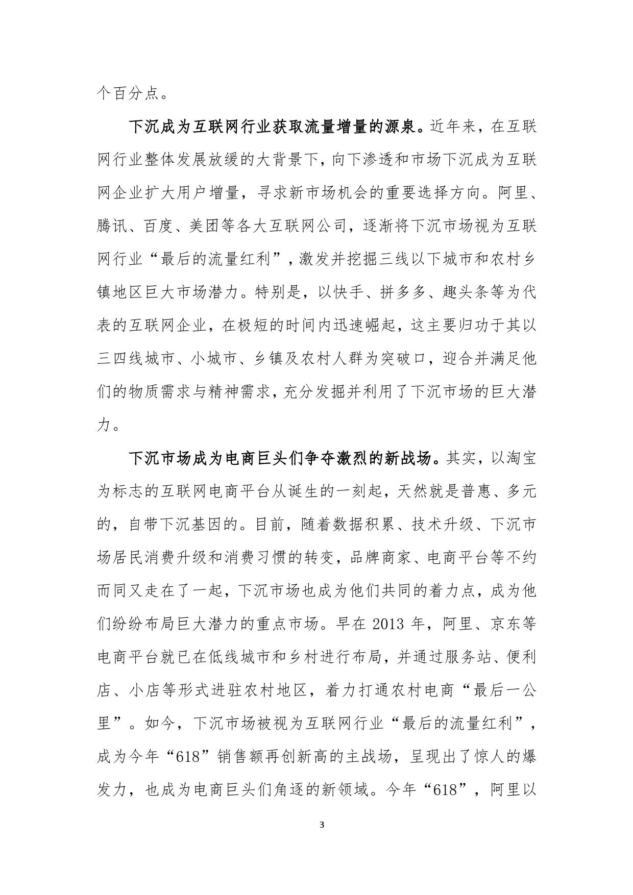 报告认为中国的互联网电商经历了早期的假货横行的“草莽时代”,进入既要“品质”又要“实惠”的阶段。2018年以来,不少新兴互联网公司通过“下沉”概念引起了业内关注。对此,报告鲜明指出,下沉市场的增长并不等于低质低价商品的增长。