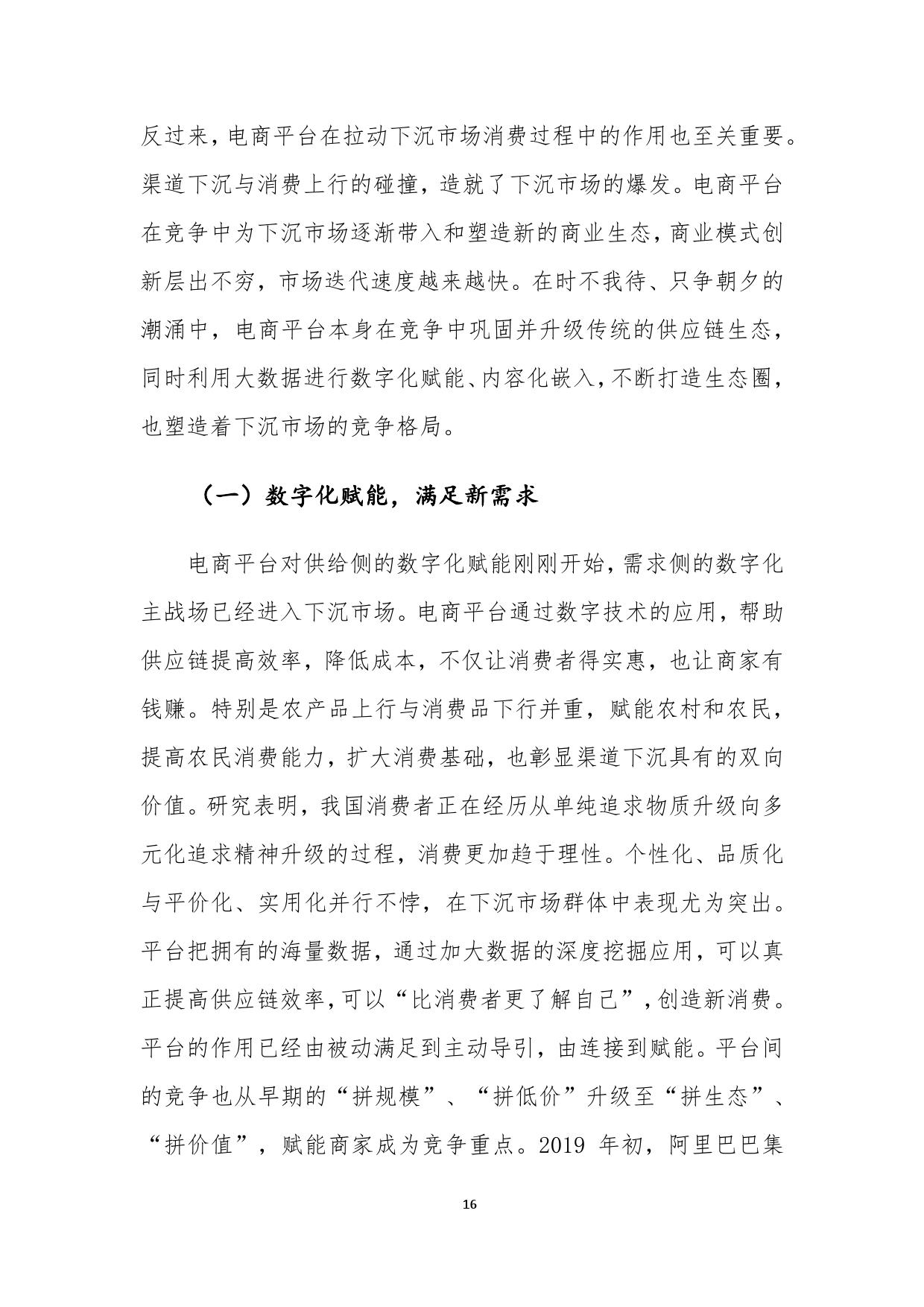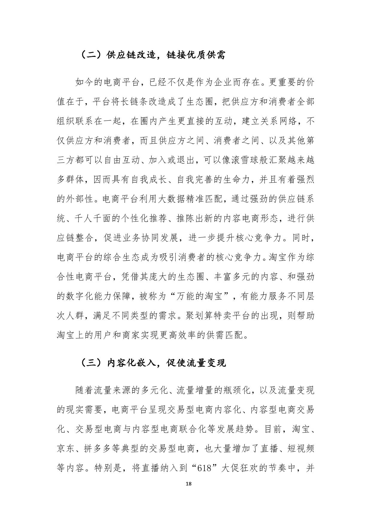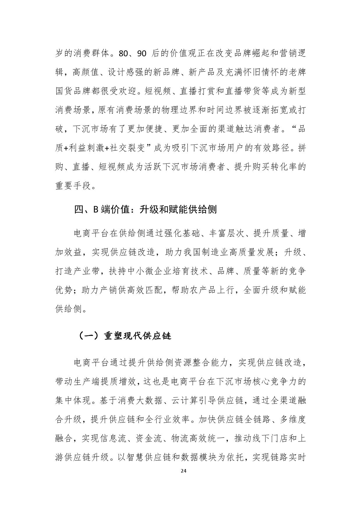 报告认为,以聚划算为代表的电商平台,不仅满足了下沉市场消费需求,同时通过营销平台爆发力,帮助品牌获取下沉市场新客,赋能品牌商家,实现了多方共赢。商务部研究院认为,供给侧升级是下沉市场竞争的核心,只有更好地将消费端与生产端进行无缝对接,更好地满足个性化、品牌化、品质化、体验式消费需求的电商平台,才能创造新供给,满足新需求,“面对愈加理性成熟的下沉市场消费者,商业生态完备的电商平台将逐步显现竞争优势”。
