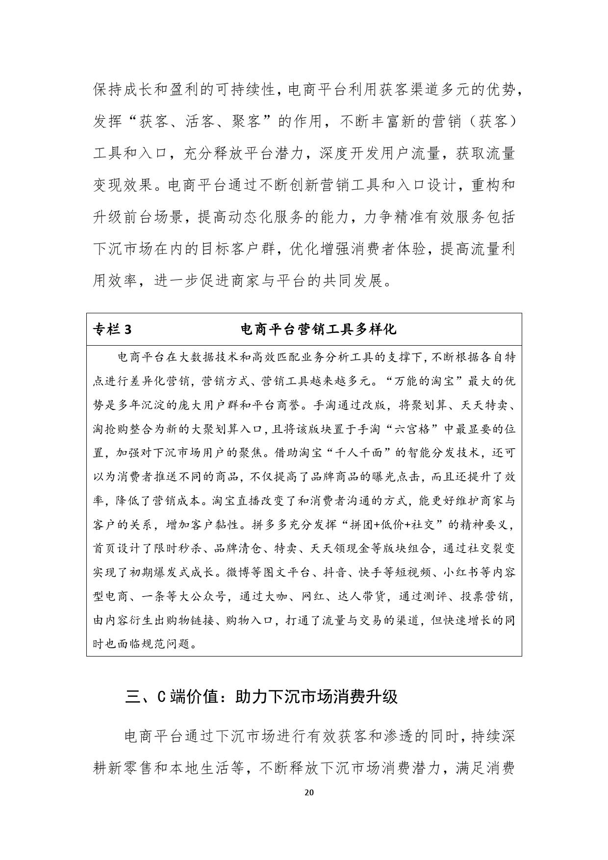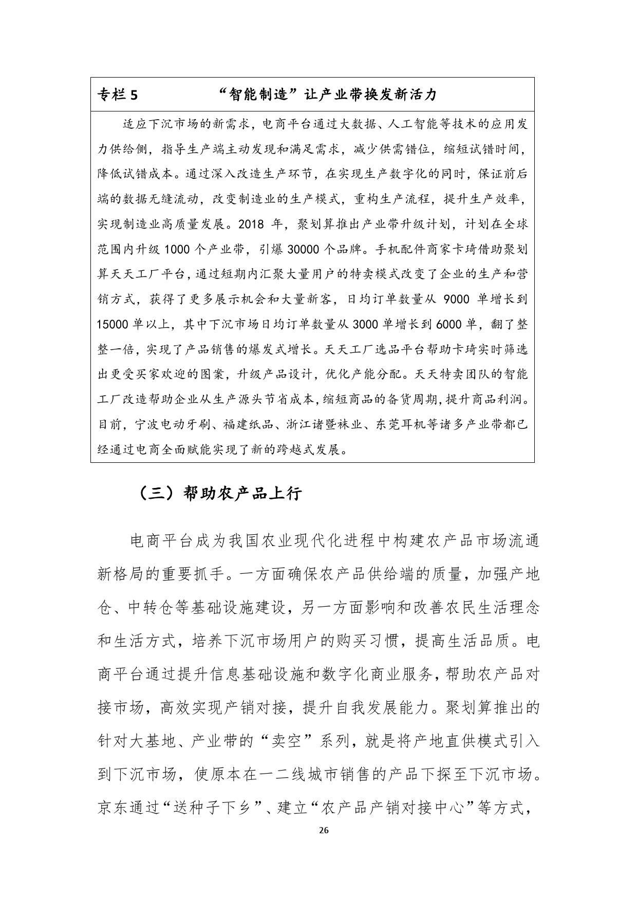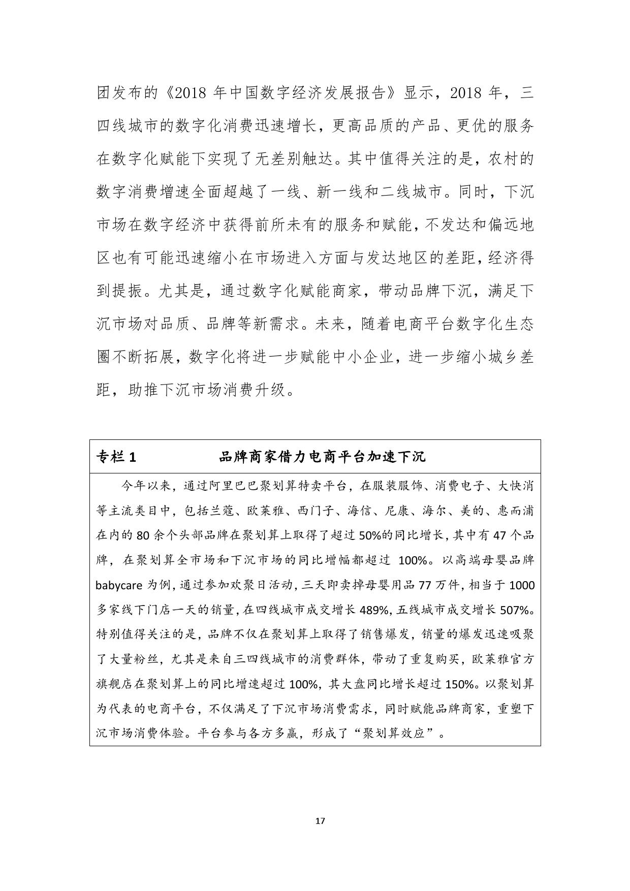 报告分析认为,这印证了下沉市场对于品质商品的巨大需求和爆发潜力,低端山寨商品正在逐渐被中端品牌商品取代,下沉市场的消费结构正在从以低端商品为主的“金字塔”模式向“橄榄型”形态发展。在商品结构优化的同时,头部品牌和电商平台深度合作也是本轮电商下沉的重要特点。本次报告中,商务部研究院将“聚划算效应”作为典型案例进行了讨论。