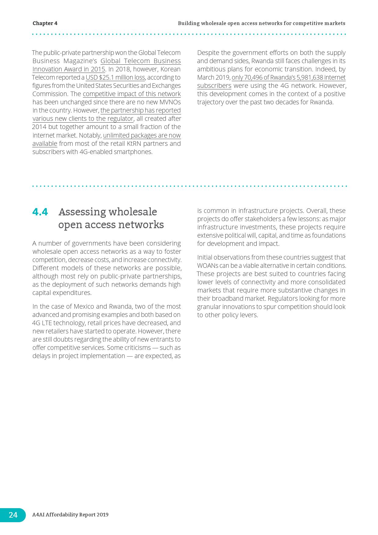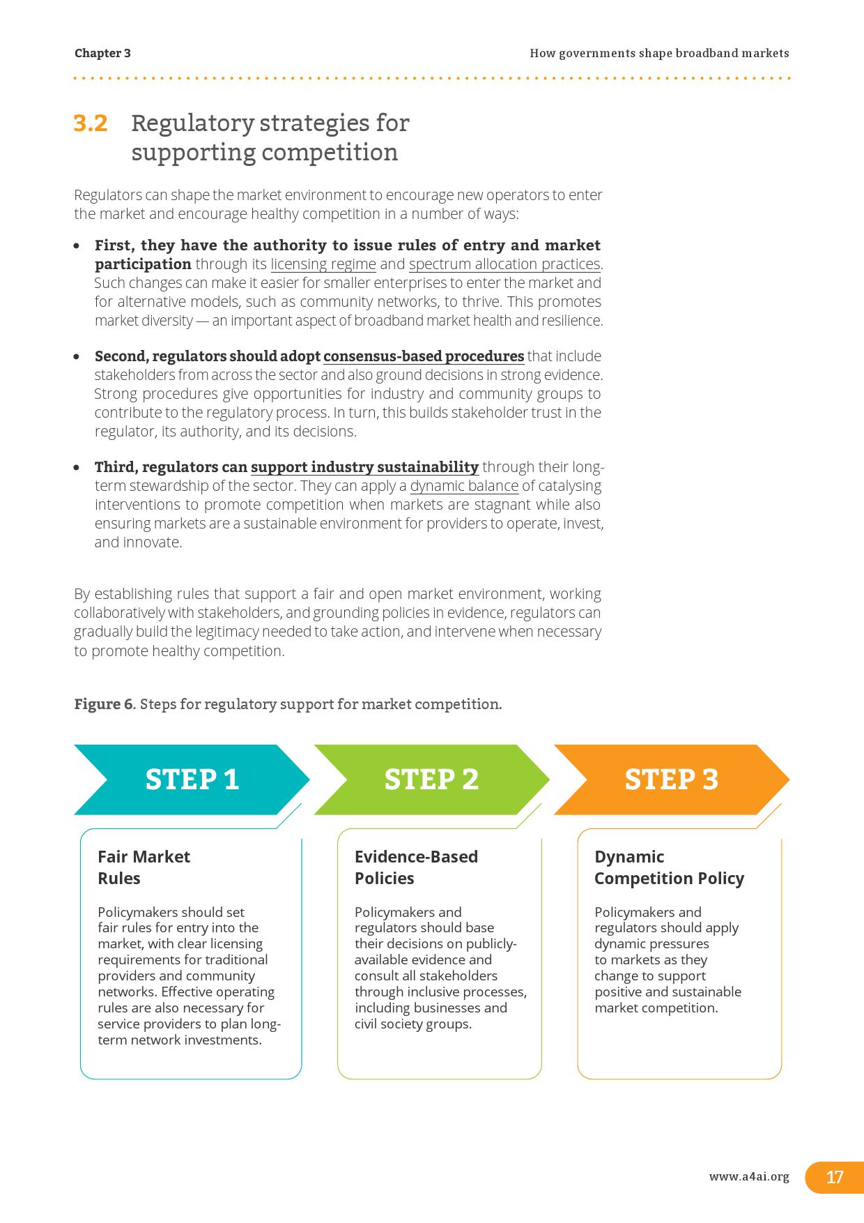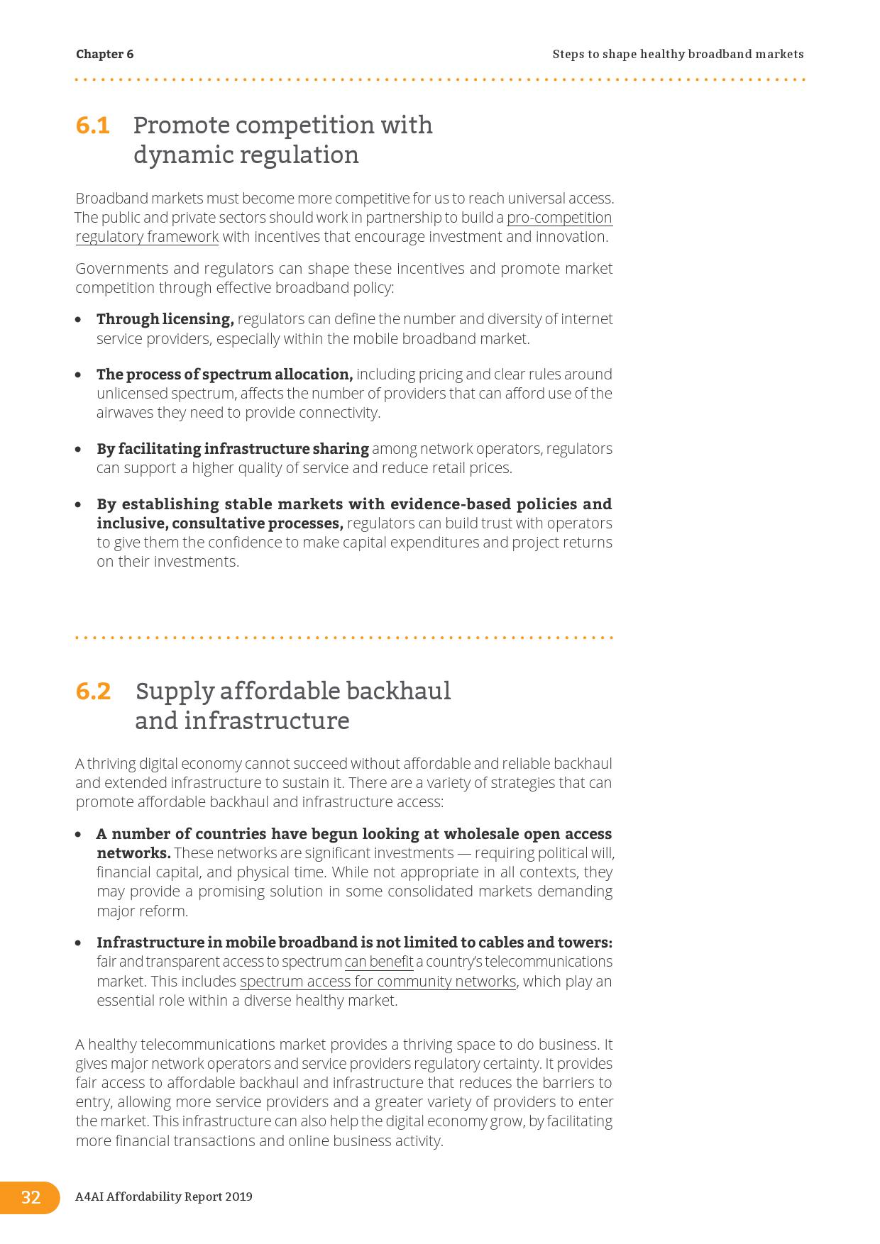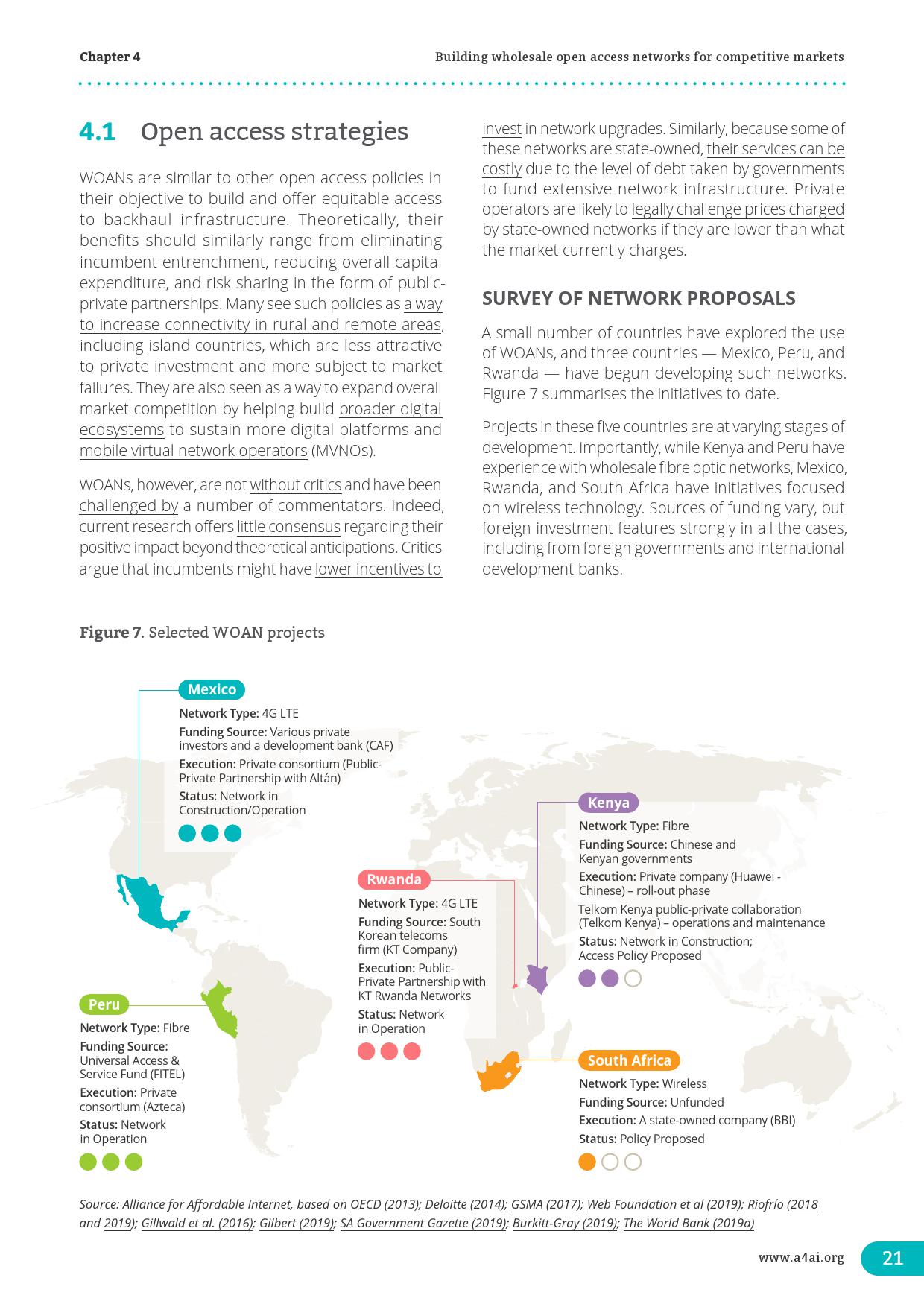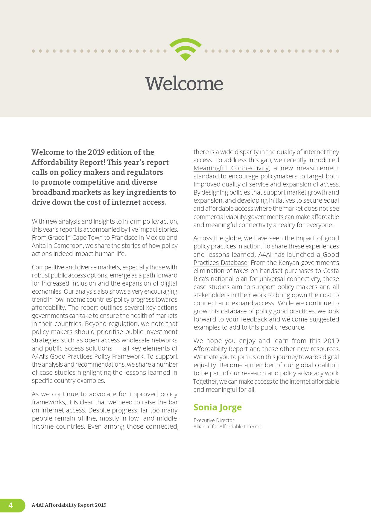 廉价互联网联盟还创建了一个良好实践数据库,其中包括对纳米比亚等低收入和中等收入国家改进准入的案例研究。纳米比亚允许新的服务提供商进入市场,并看到成本下降。肯尼亚还因取消了对手机的征税而使数百万公民可以上网而受到表彰。