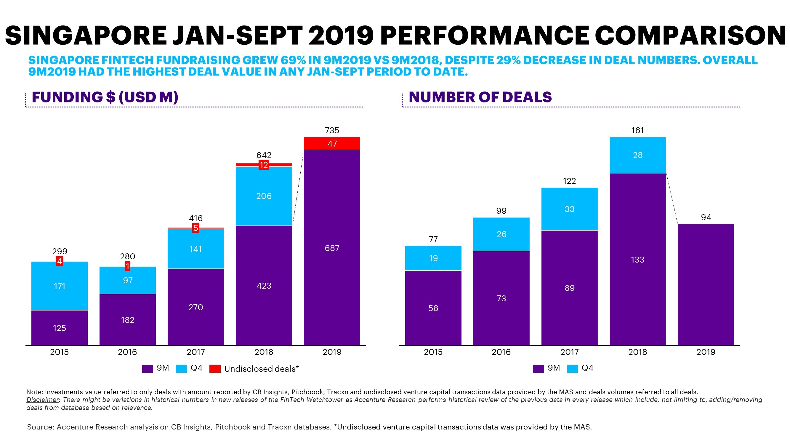 根据埃森哲的分析,2019年前9个月新加坡对金融科技企业的投资大幅增长,主要是由于支付初创公司和保险技术公司的融资。