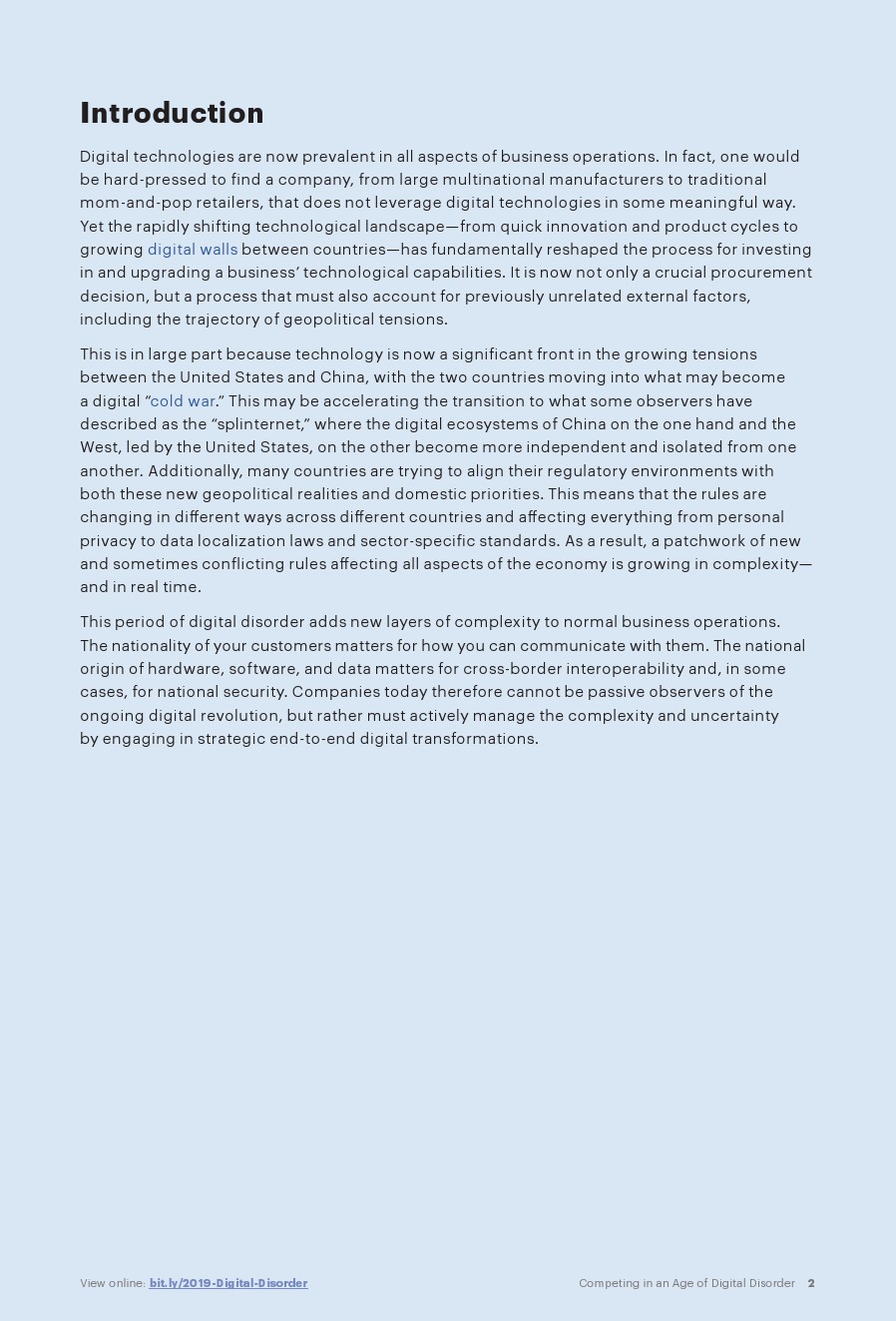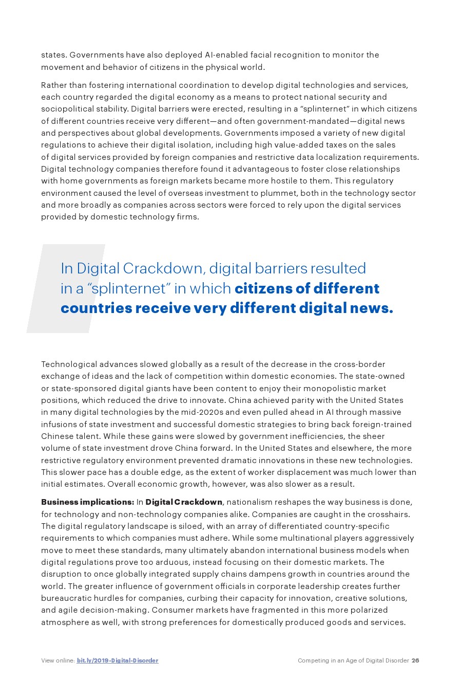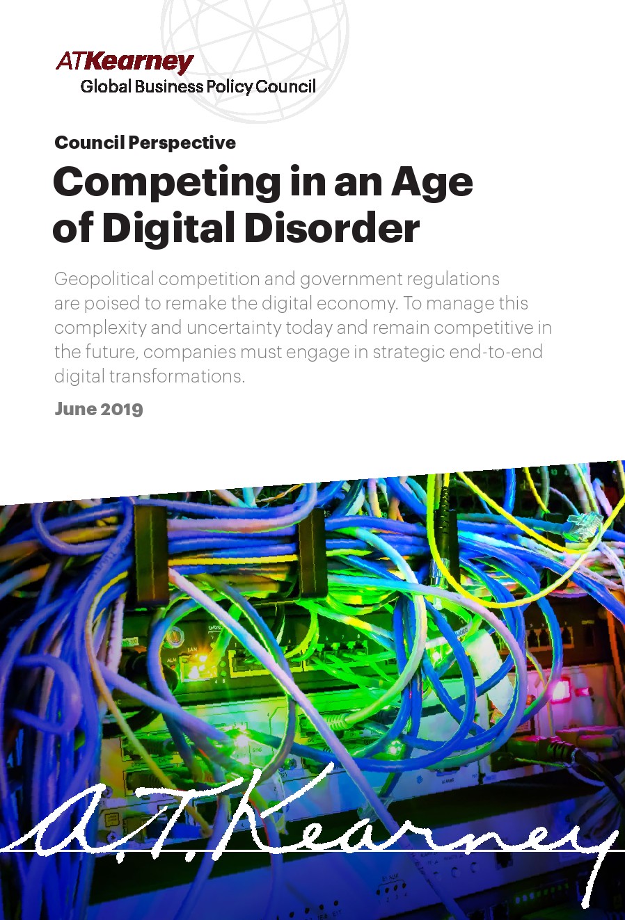 A.T. Kearney发布了新报告“数字时代的竞争”。全球技术格局正在重建,曾经自由和不受约束的数据跨境传输受到新的、更大的数字墙的约束。“互联网拼接”和“数字冷战”等术语变得无处不在,迫使世界各地的公司改变从采购到客户参与的各方面的战略。我们正在迎来一个数字混乱的时期。