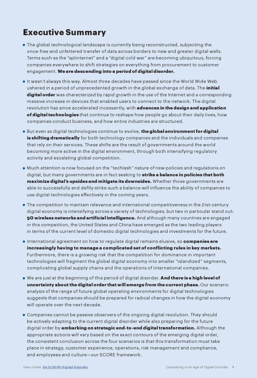 公司不能成为正在进行的数字革命的被动观察者。他们应该积极适应当前的数字混乱,同时还应通过开展战略性的数字转型,为未来的数字秩序做好准备。