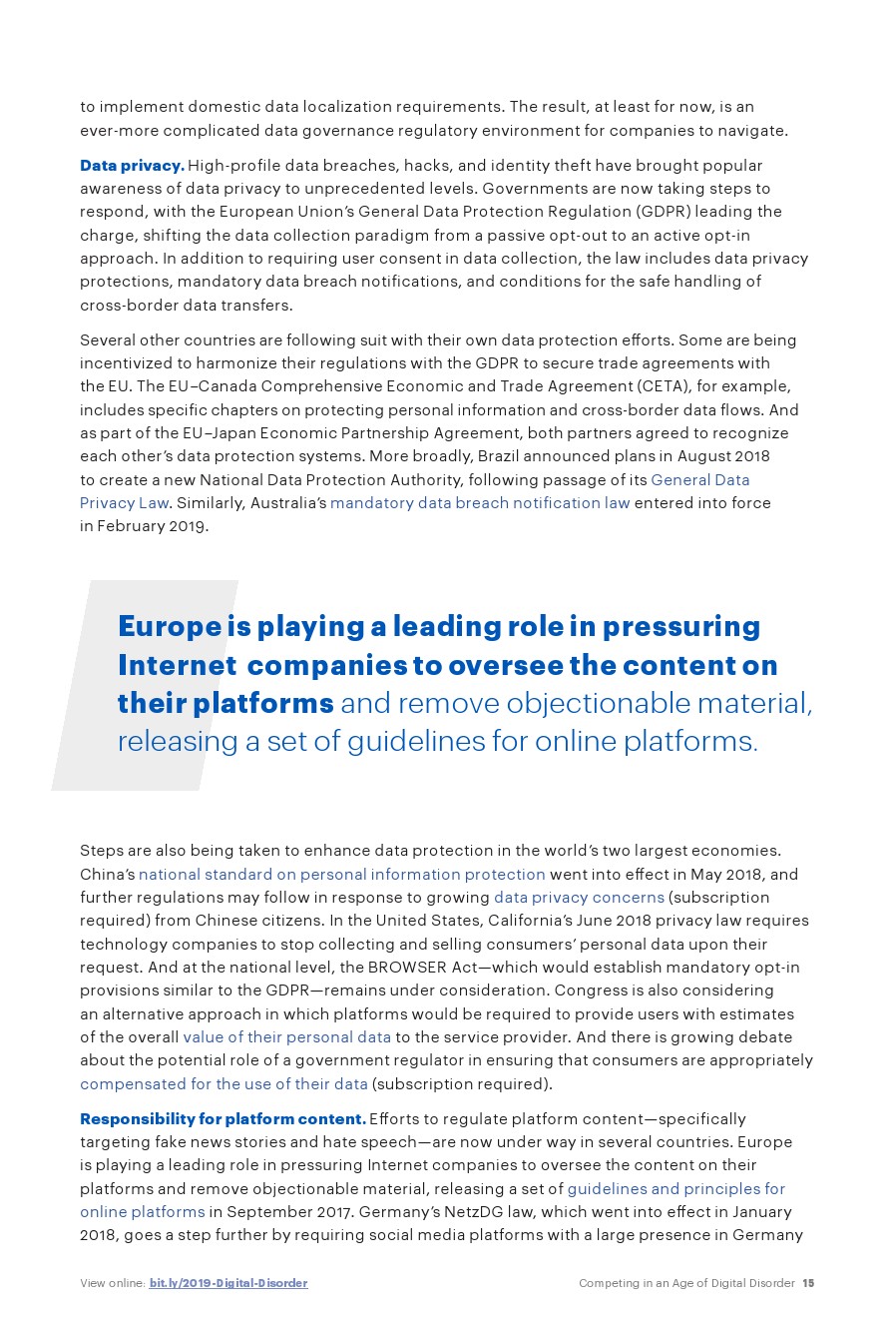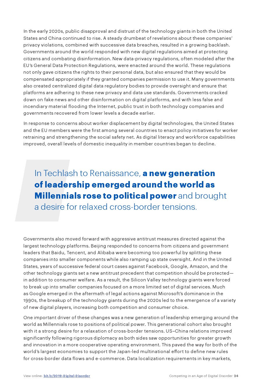 现在很多注意力都集中在关于数字的新政策和法规的“技术冲击”性质上,许多政府都在寻求政策平衡,既能最大限度地发挥数字的优势,又能减轻其负面影响。