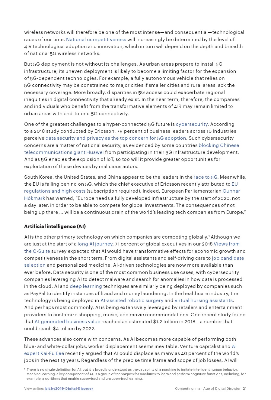 在21世纪的数字经济中,维持相关性和国际竞争力的竞争在各种技术领域加剧。但有两种技术尤其突出:5G和人工智能。