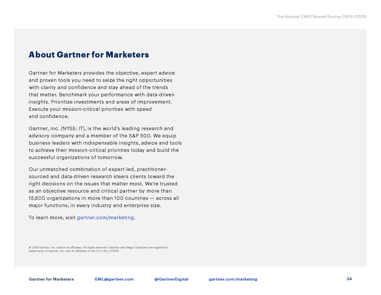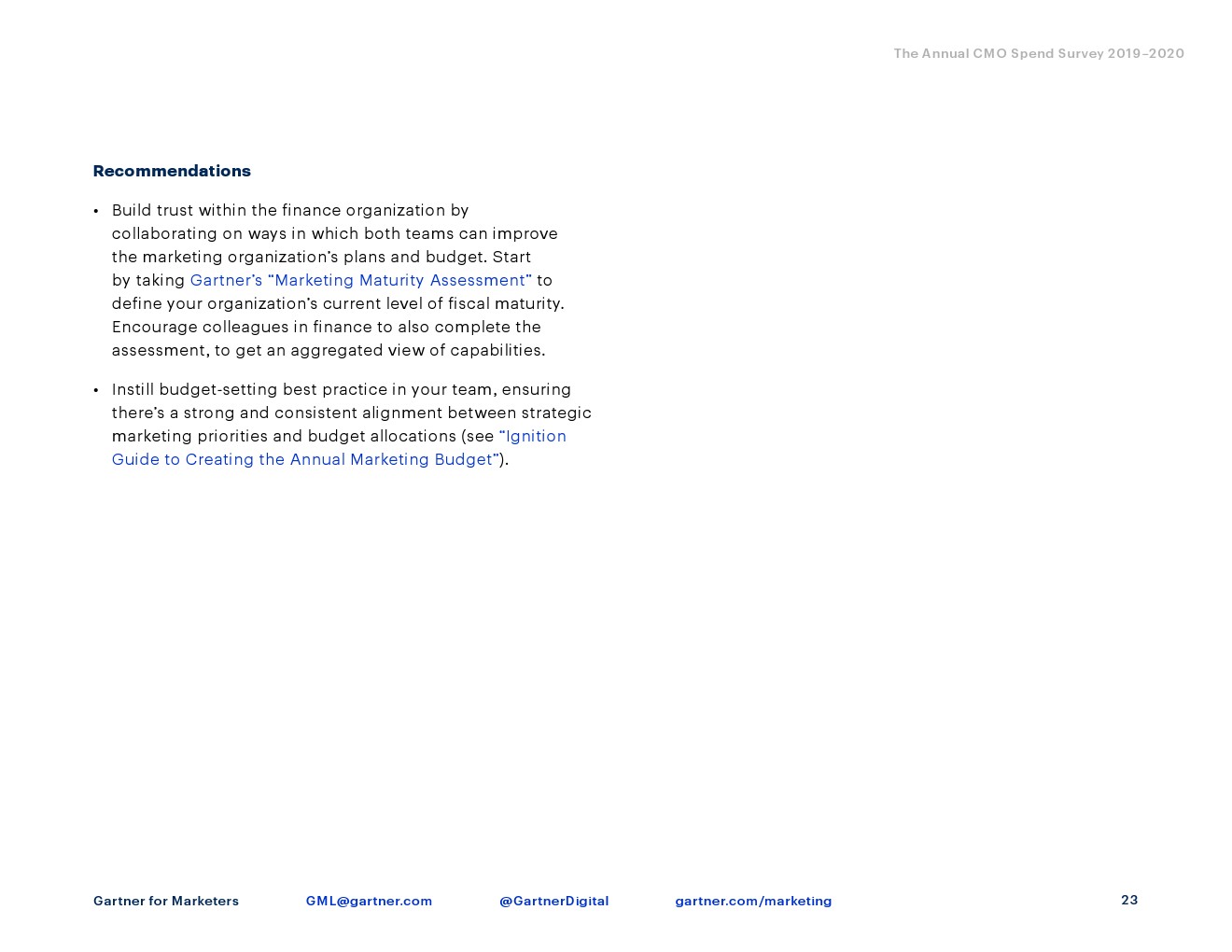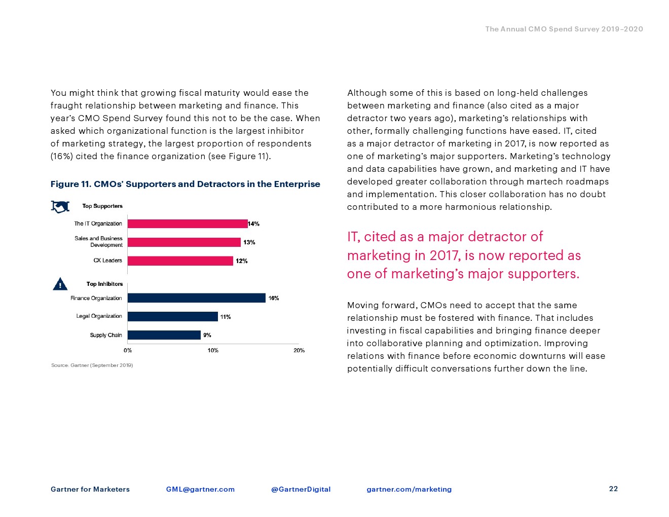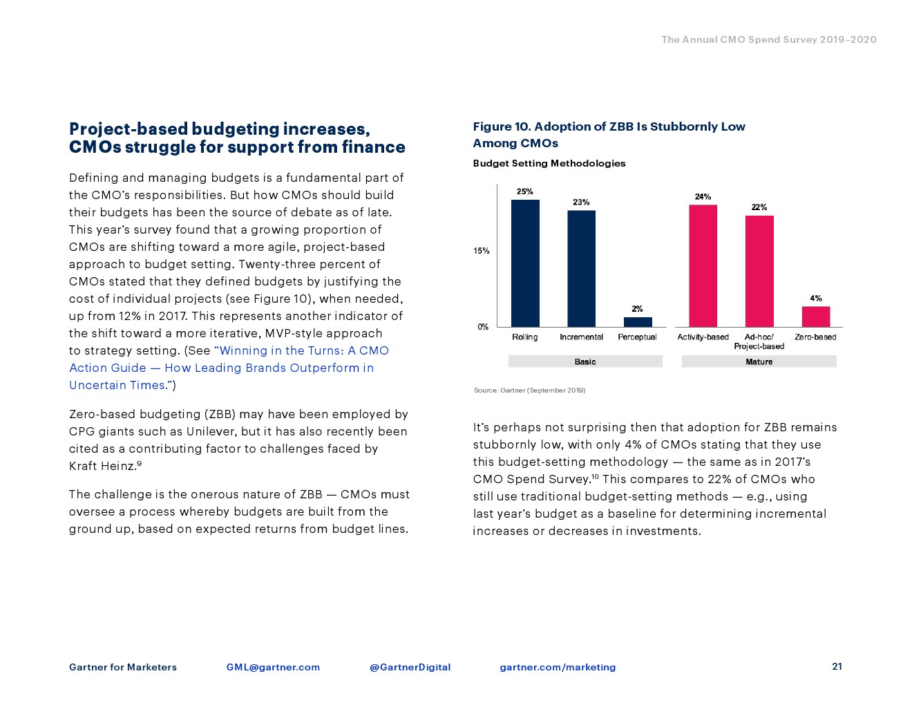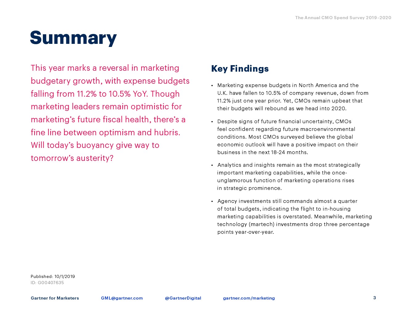 Gartner发布了“2019-2020 CMO支出年度报告”。今年,营销预算增长出现了逆转趋势,支出预算占比从11.2%下降到10.5%。尽管市场营销领导者仍然对市场营销预算未来的健康状况持乐观态度,但乐观和傲慢之间只有一条细微的界限。