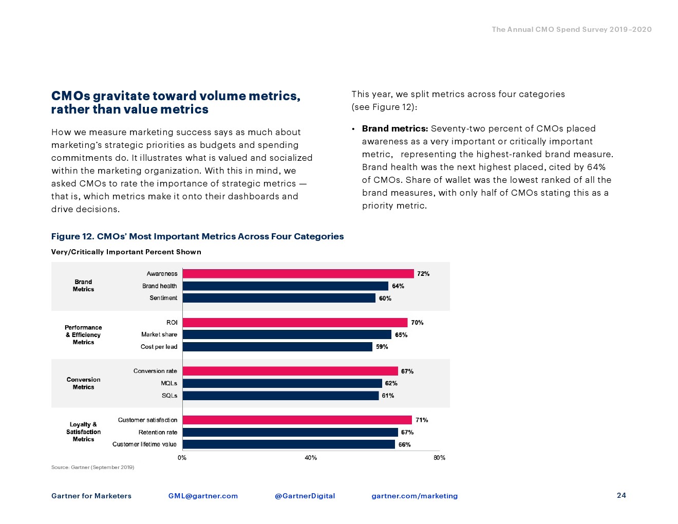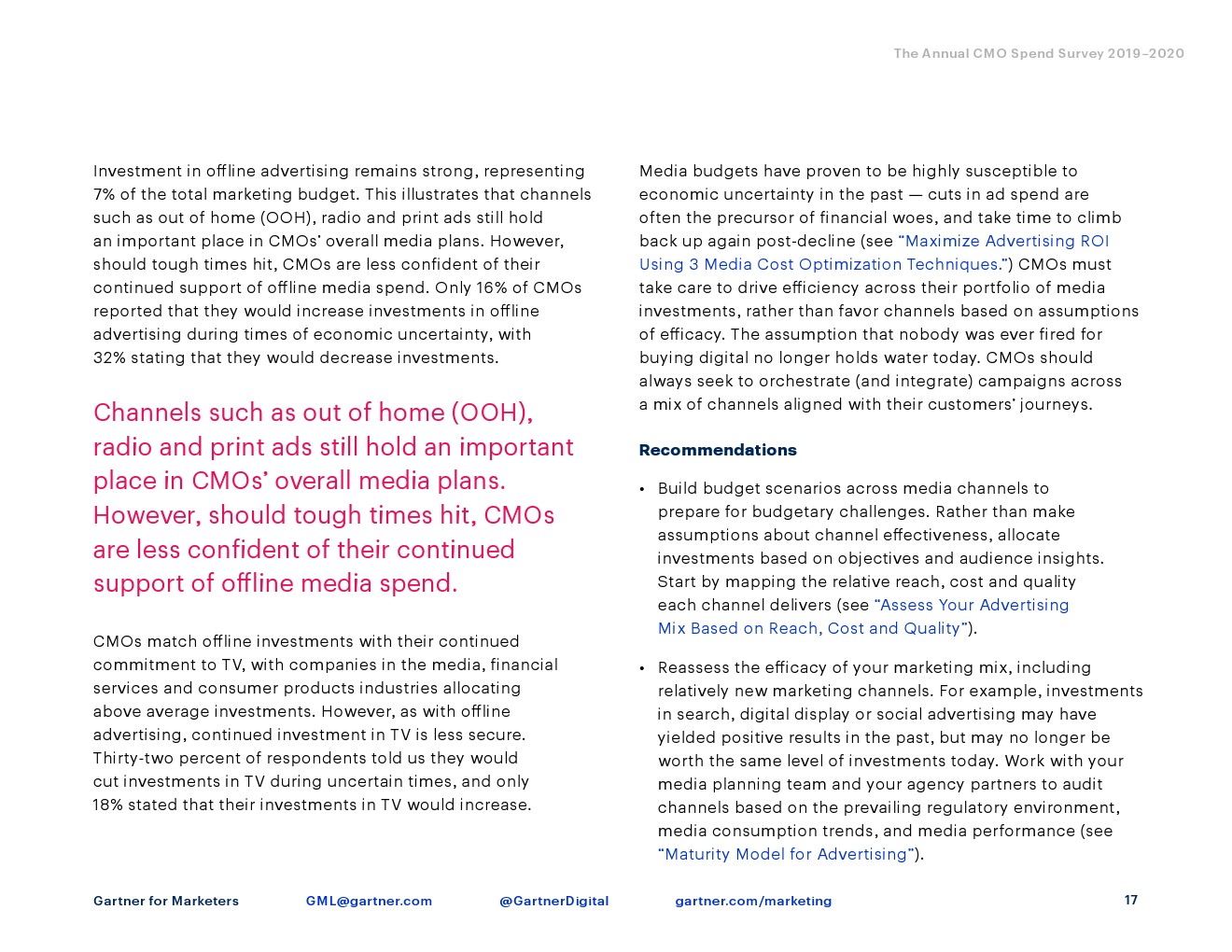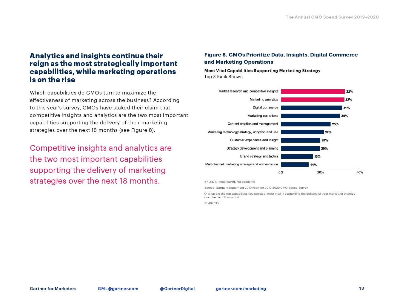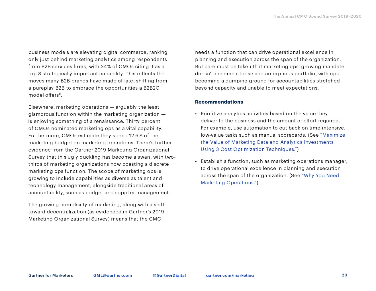 Gartner发布了“2019-2020 CMO支出年度报告”。今年,营销预算增长出现了逆转趋势,支出预算占比从11.2%下降到10.5%。尽管市场营销领导者仍然对市场营销预算未来的健康状况持乐观态度,但乐观和傲慢之间只有一条细微的界限。