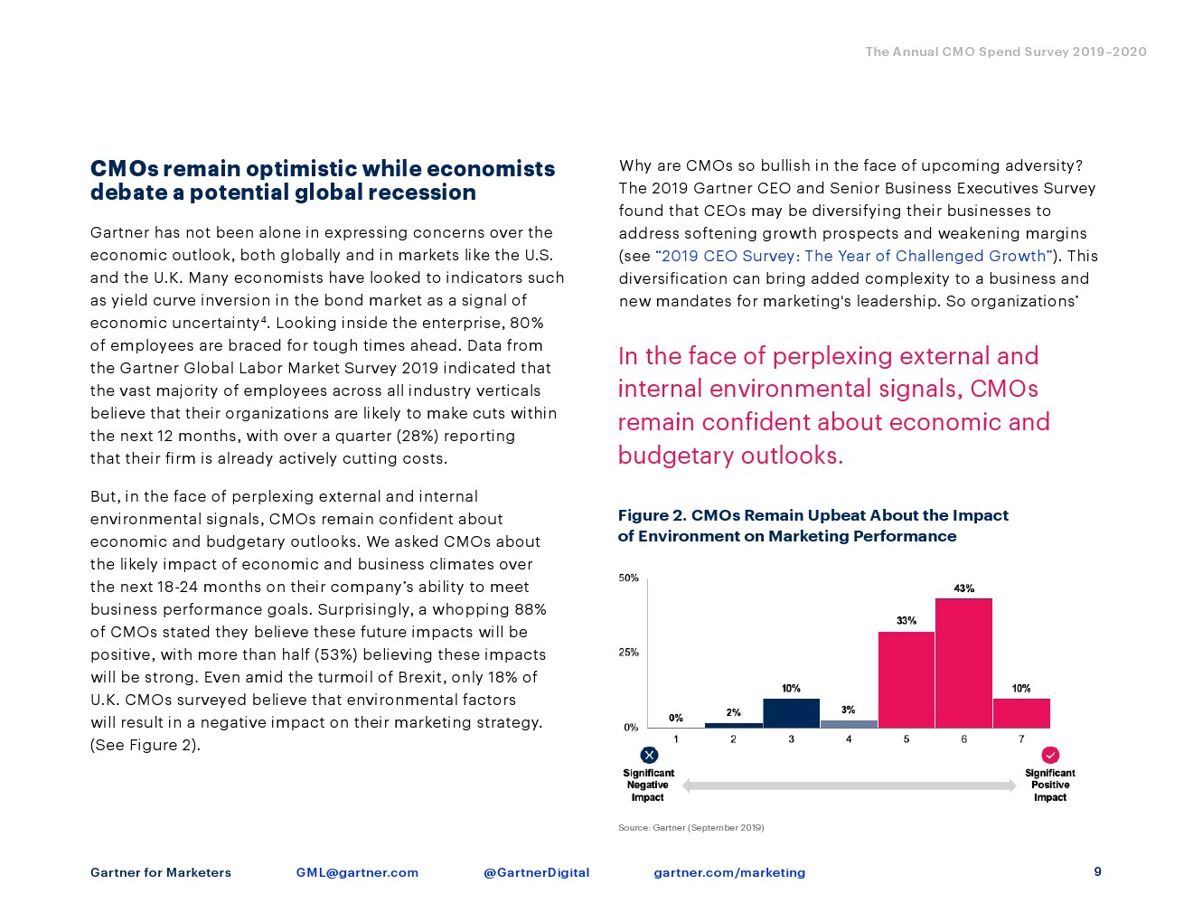 北美和英国的营销预算占公司收入的比例已从一年前的11.2%下降至10.5%。但是,CMO仍然乐观地认为,2020年他们的预算将会反弹。