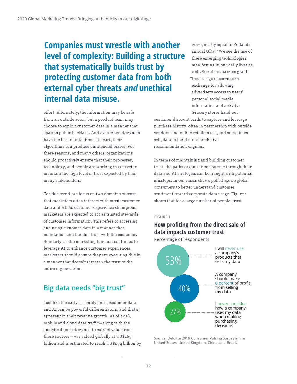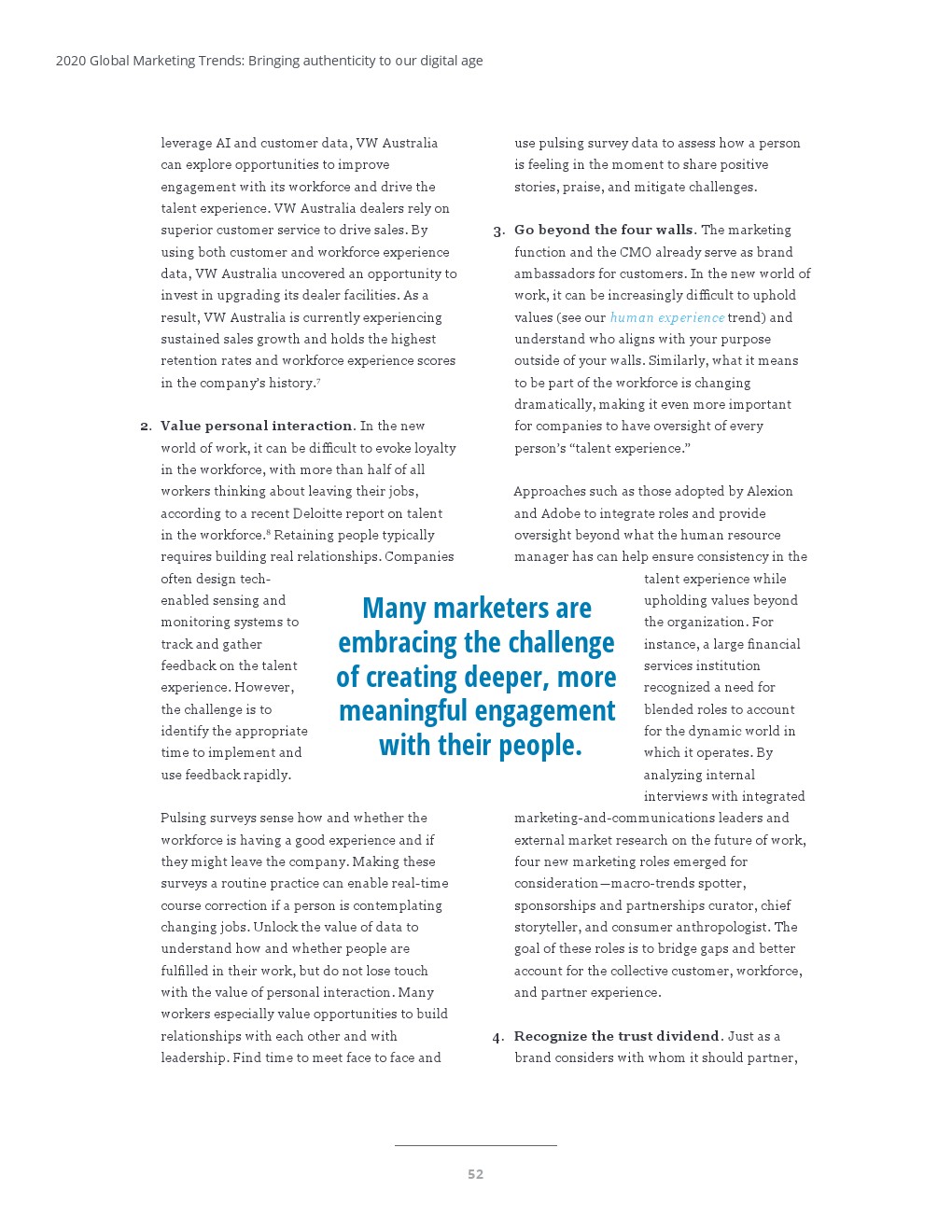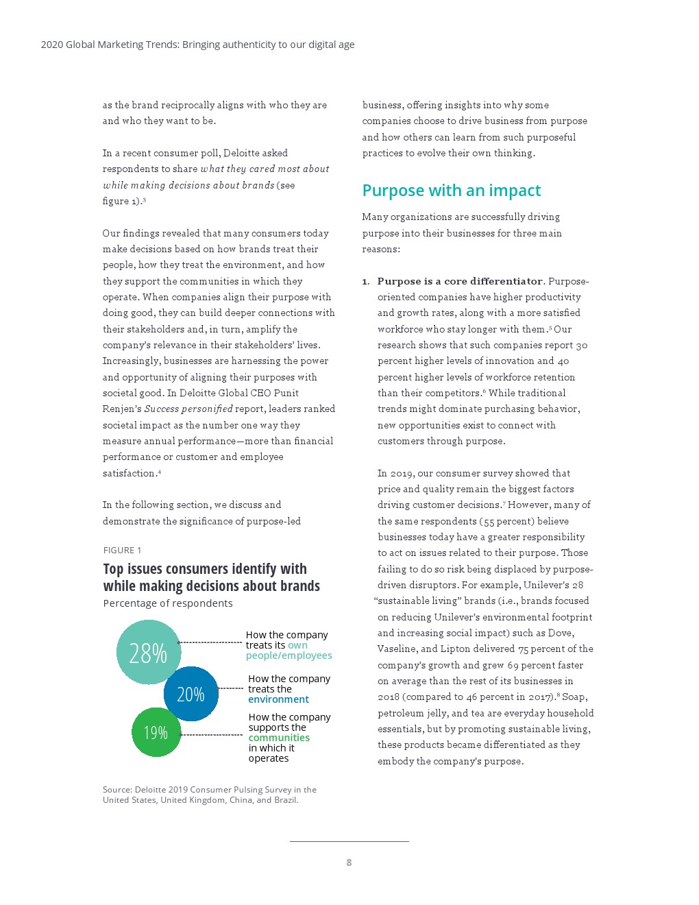 德勤发布了新报告“2020年全球营销趋势”,旨在指导高层管理人员在这种瞬息万变的数字环境中制定策略,同时保持领先地位和核心地位。通过与全球80多位专家的访谈,德勤确定了七个关键趋势,在未来18-24个月,每个企业都需要关注这些趋势: