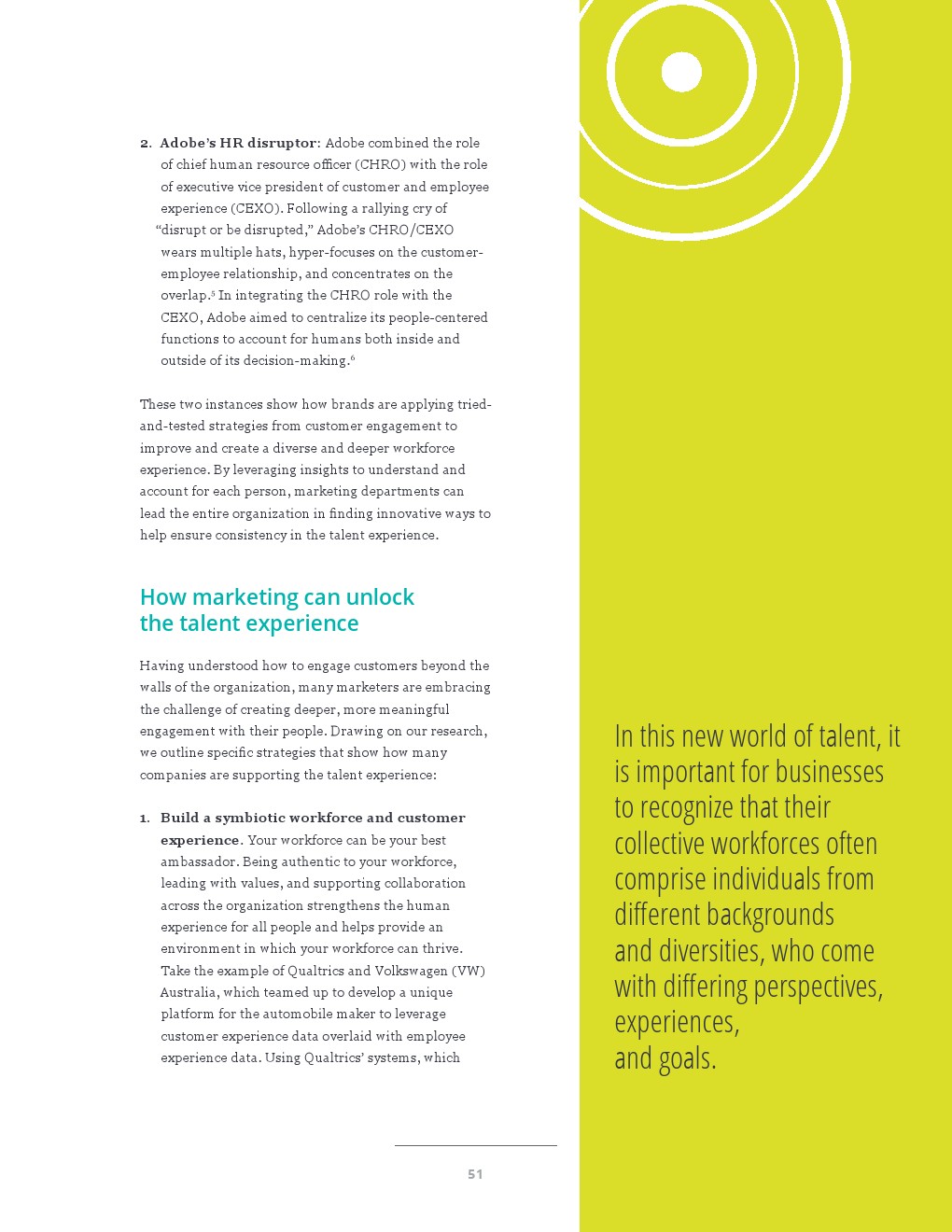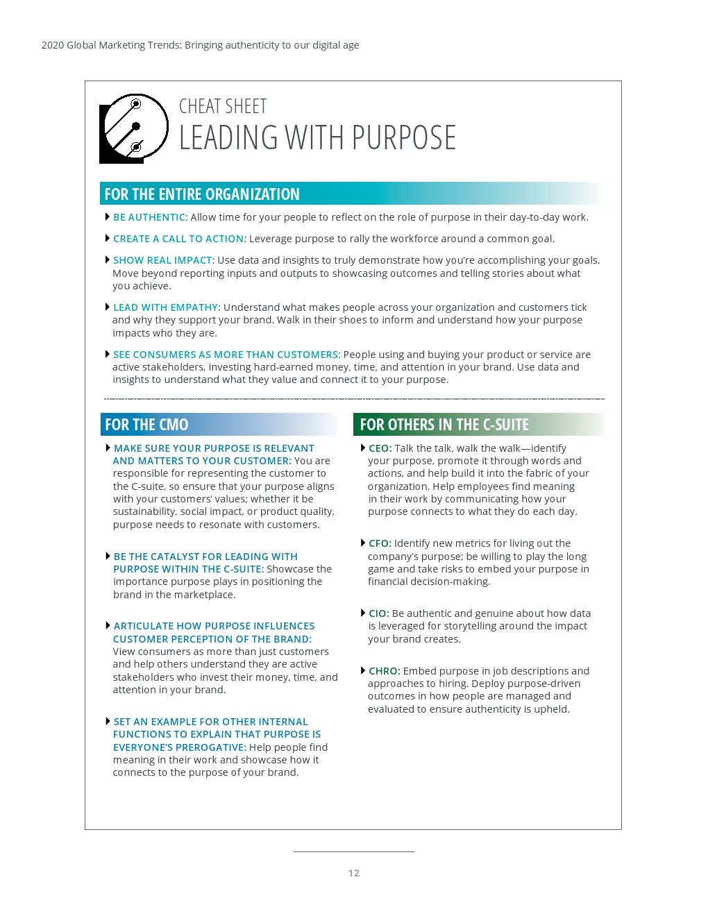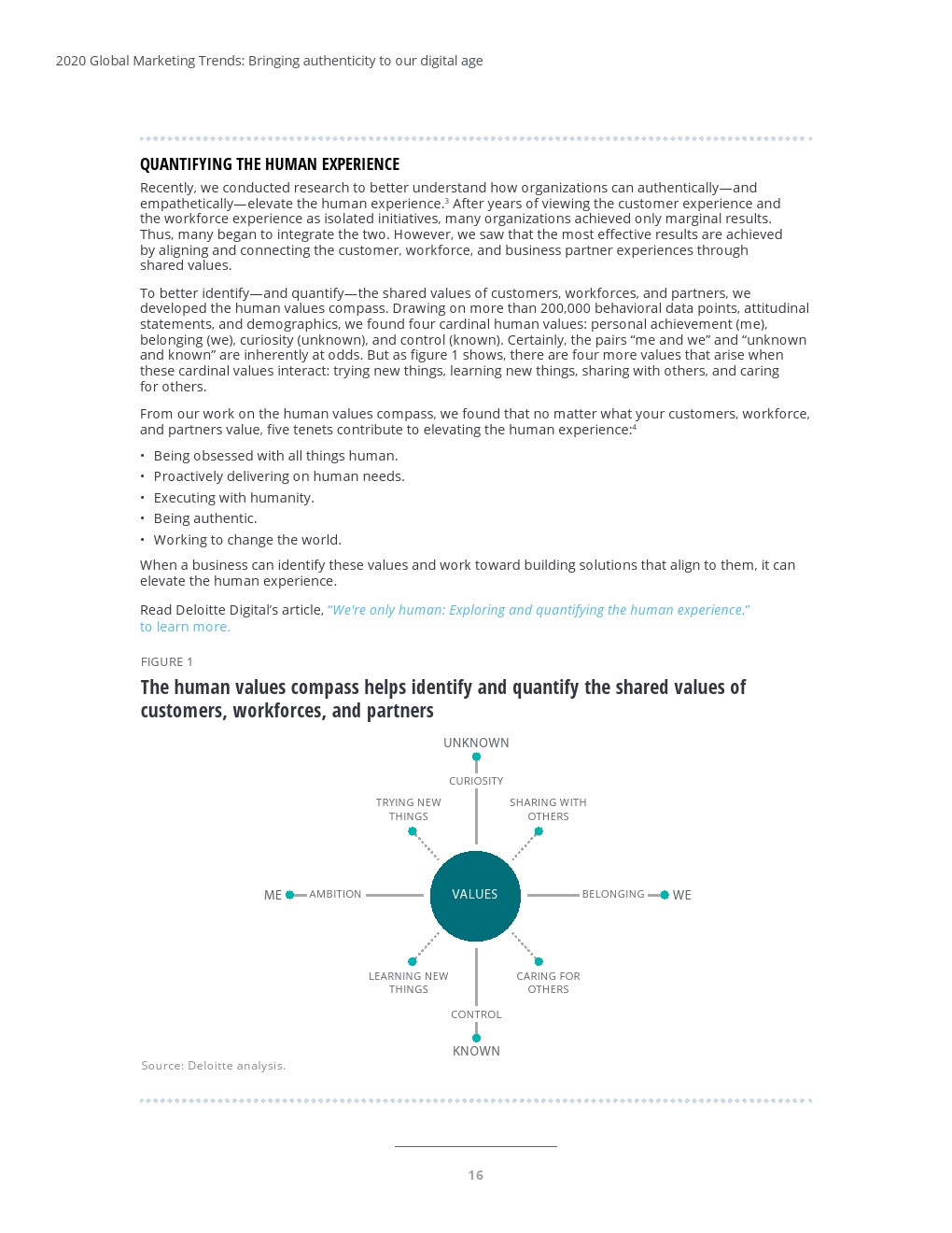 这七个营销趋势都基于以人为本的理念。目标是品牌存在的基础,虽然目标不是新事物,但它指导每个人,决定整个组织的战略选择。真正的以人为本的目标是其他企业无法模仿的。第二个趋势是人的体验,其目的是将品牌与客户、员工和业务合作伙伴之间的互动和关系纳入目标,从而确保公司运营的各个方面与生态环境变得更协调一致。