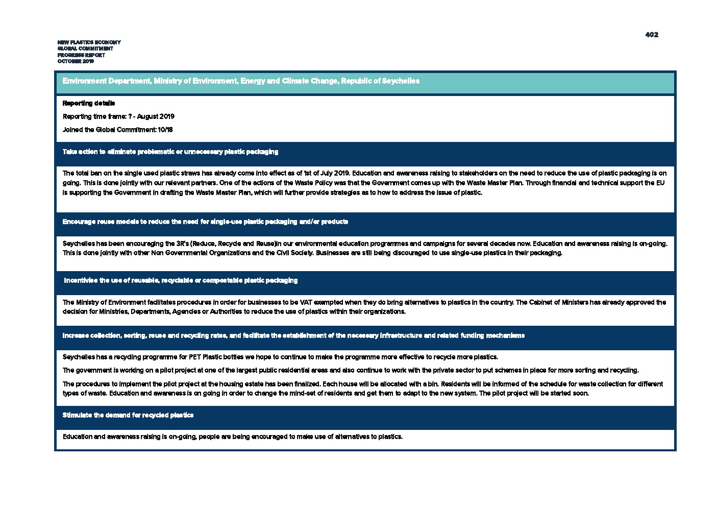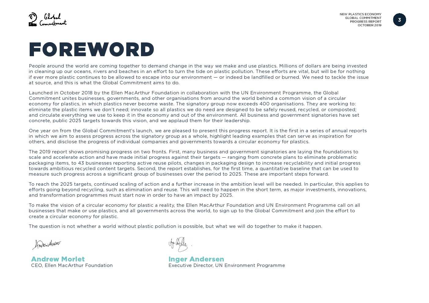 联合国环境计划发布了报告“新塑料经济全球承诺”。