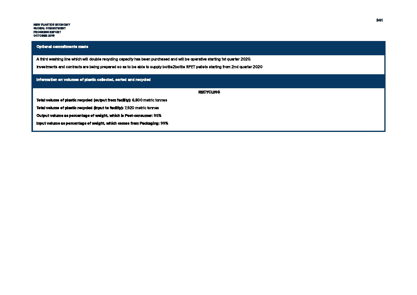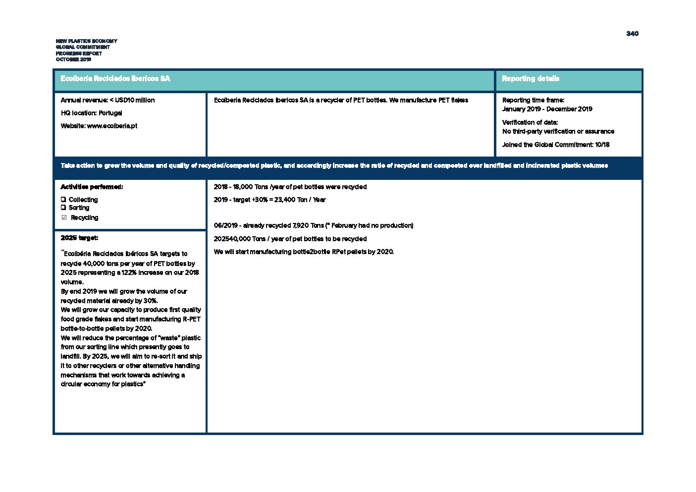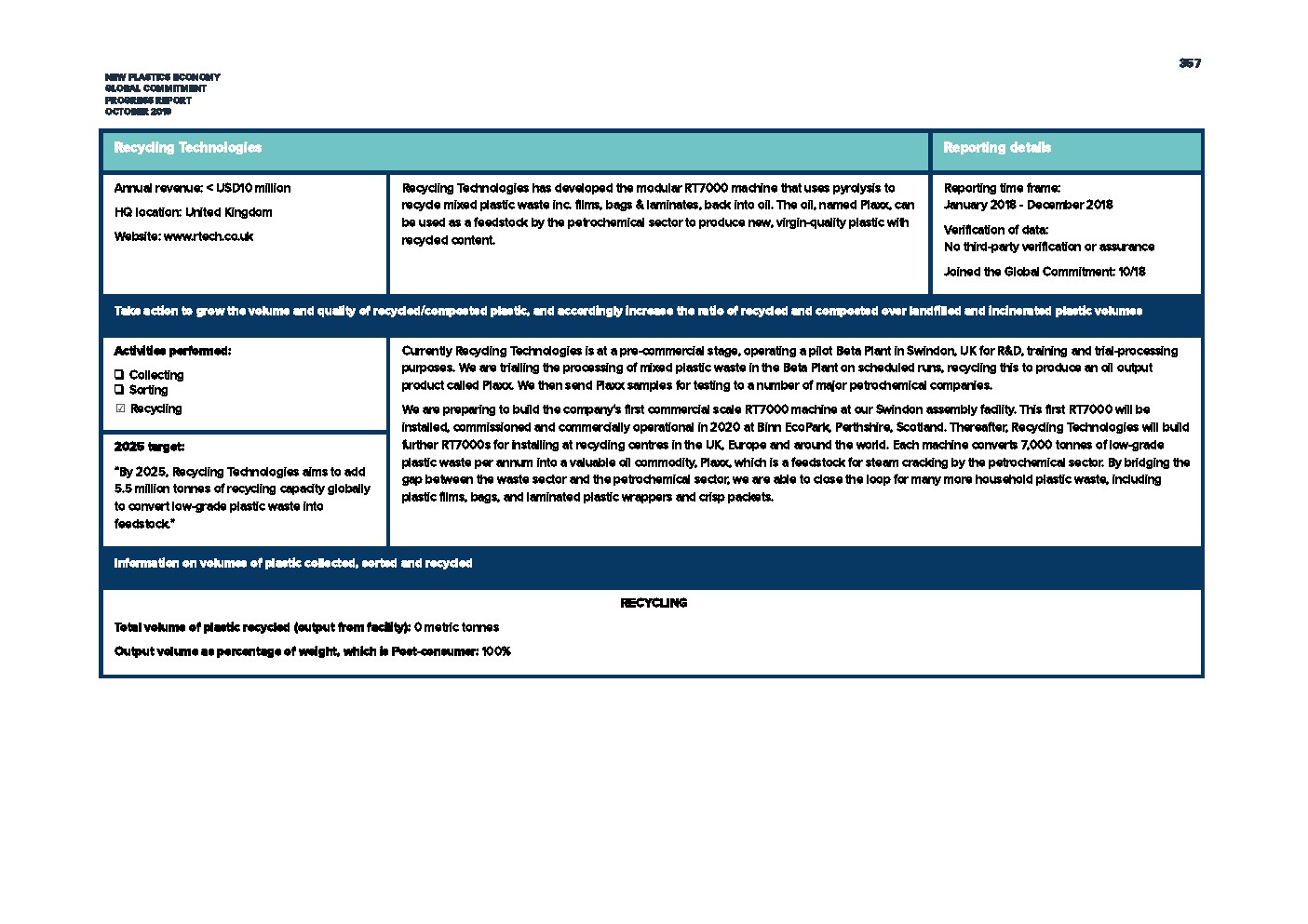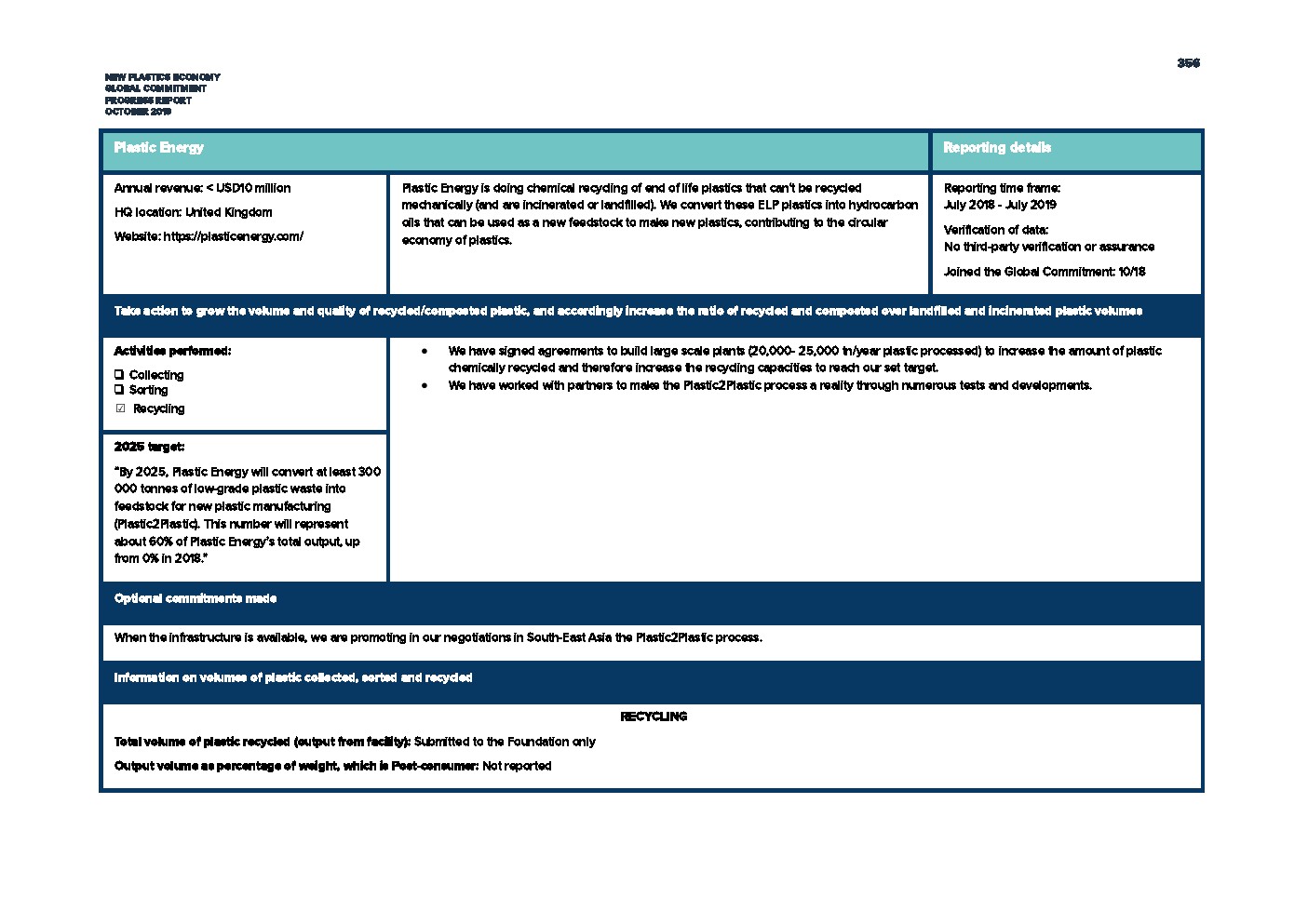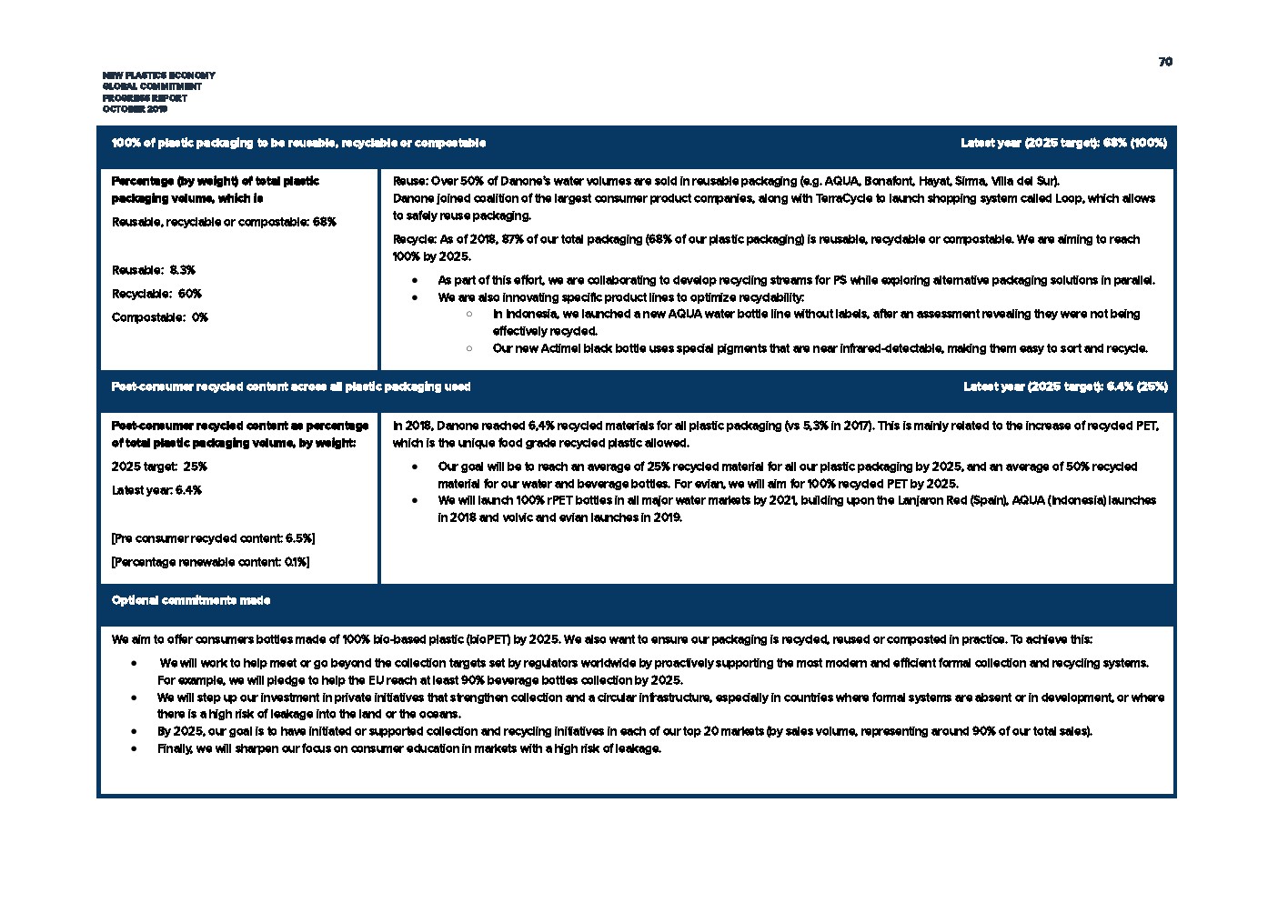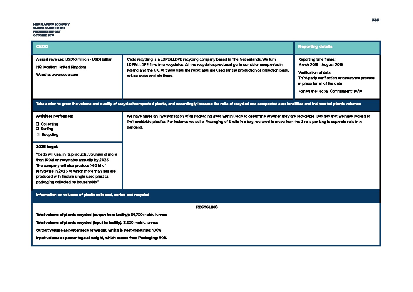 签署承诺的回收公司承诺到2025年将废塑料处理量翻两番。政府签约方还与行业和其他利益相关方合作,以实现2025年塑料包装回收率达到70%。