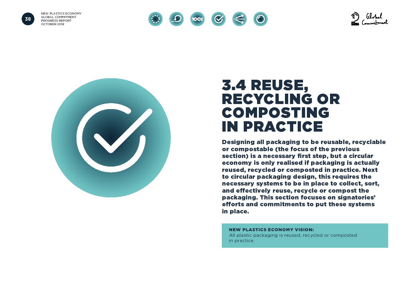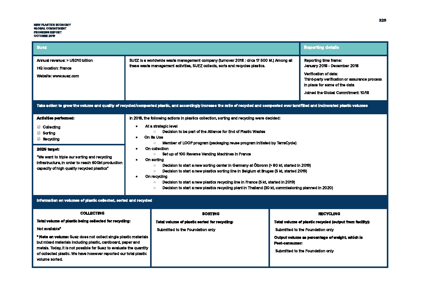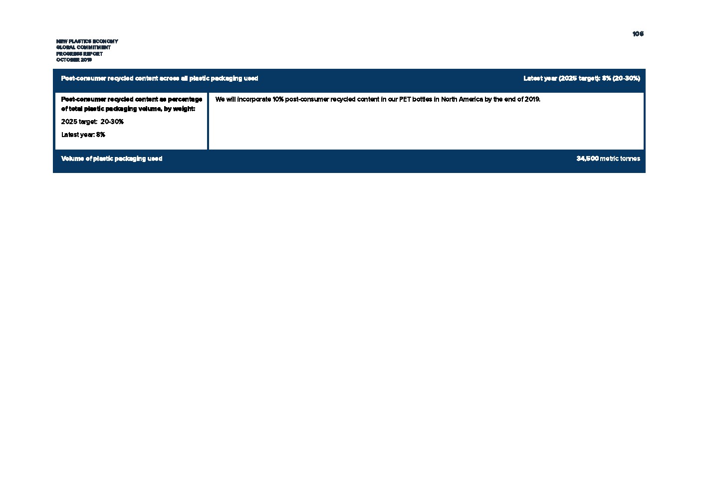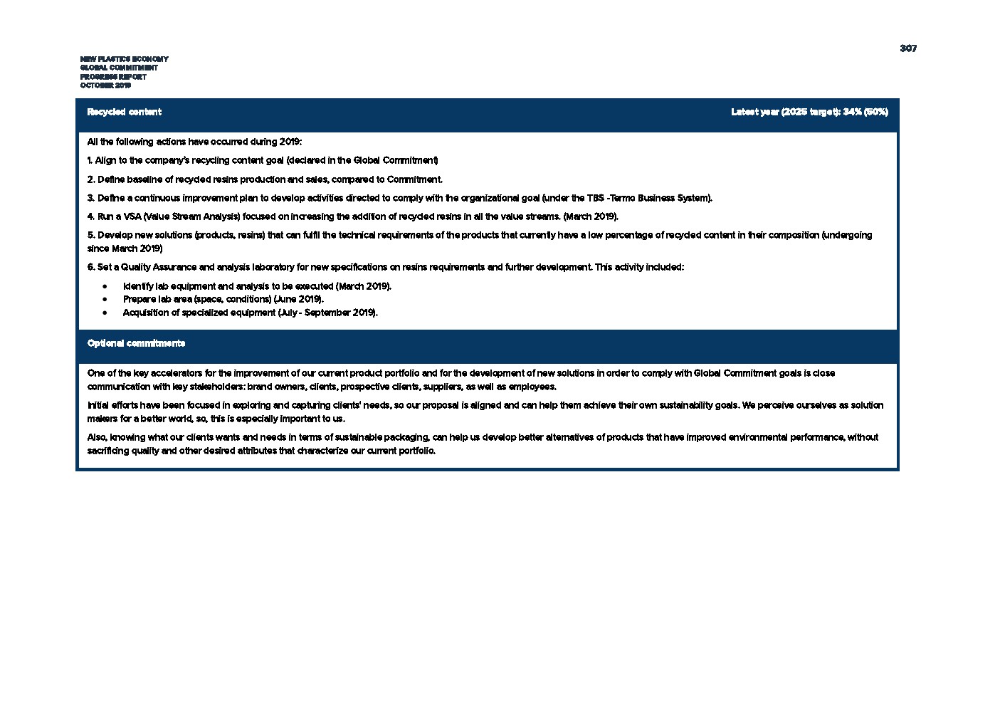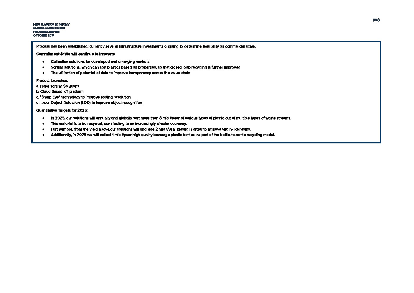 签署承诺的回收公司承诺到2025年将废塑料处理量翻两番。政府签约方还与行业和其他利益相关方合作,以实现2025年塑料包装回收率达到70%。