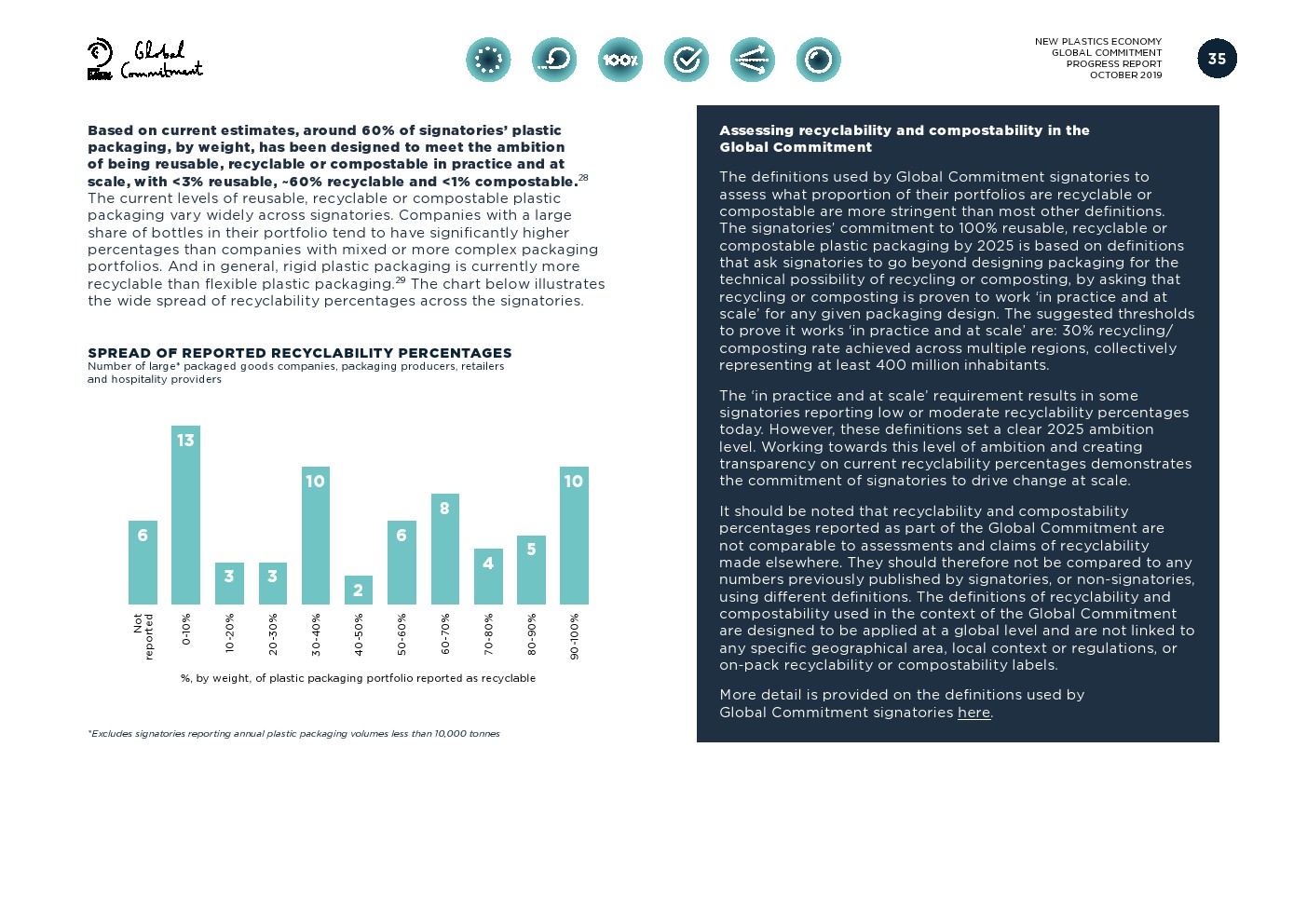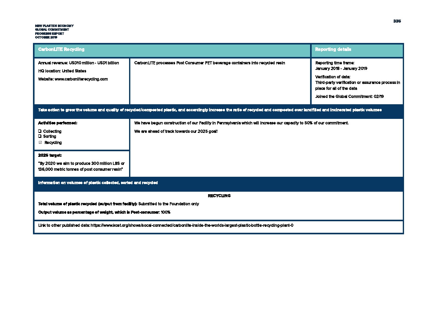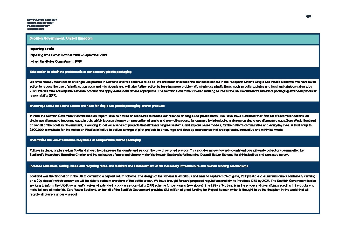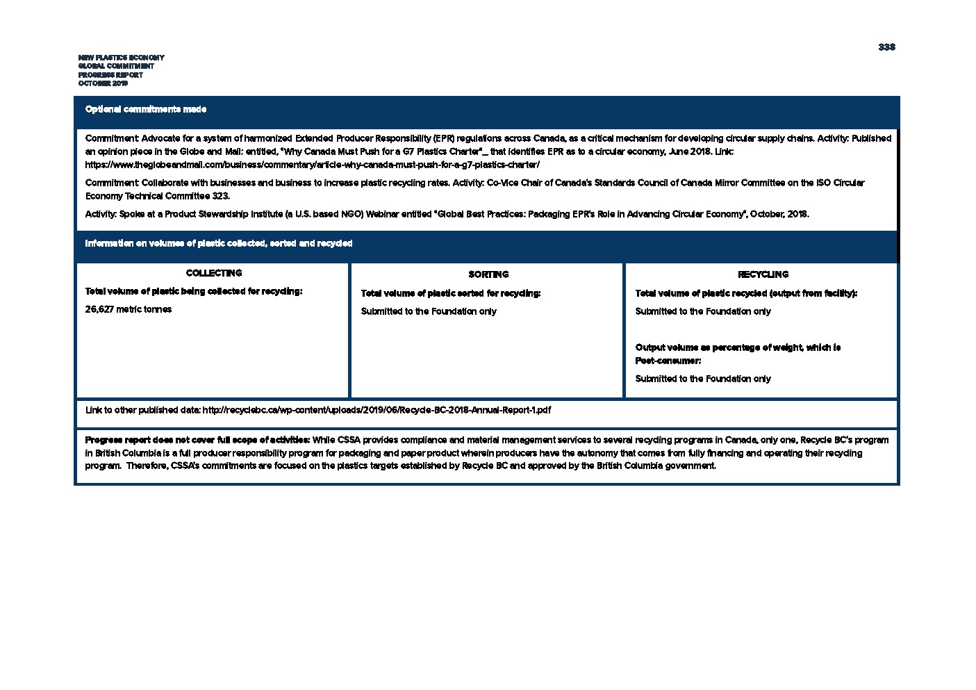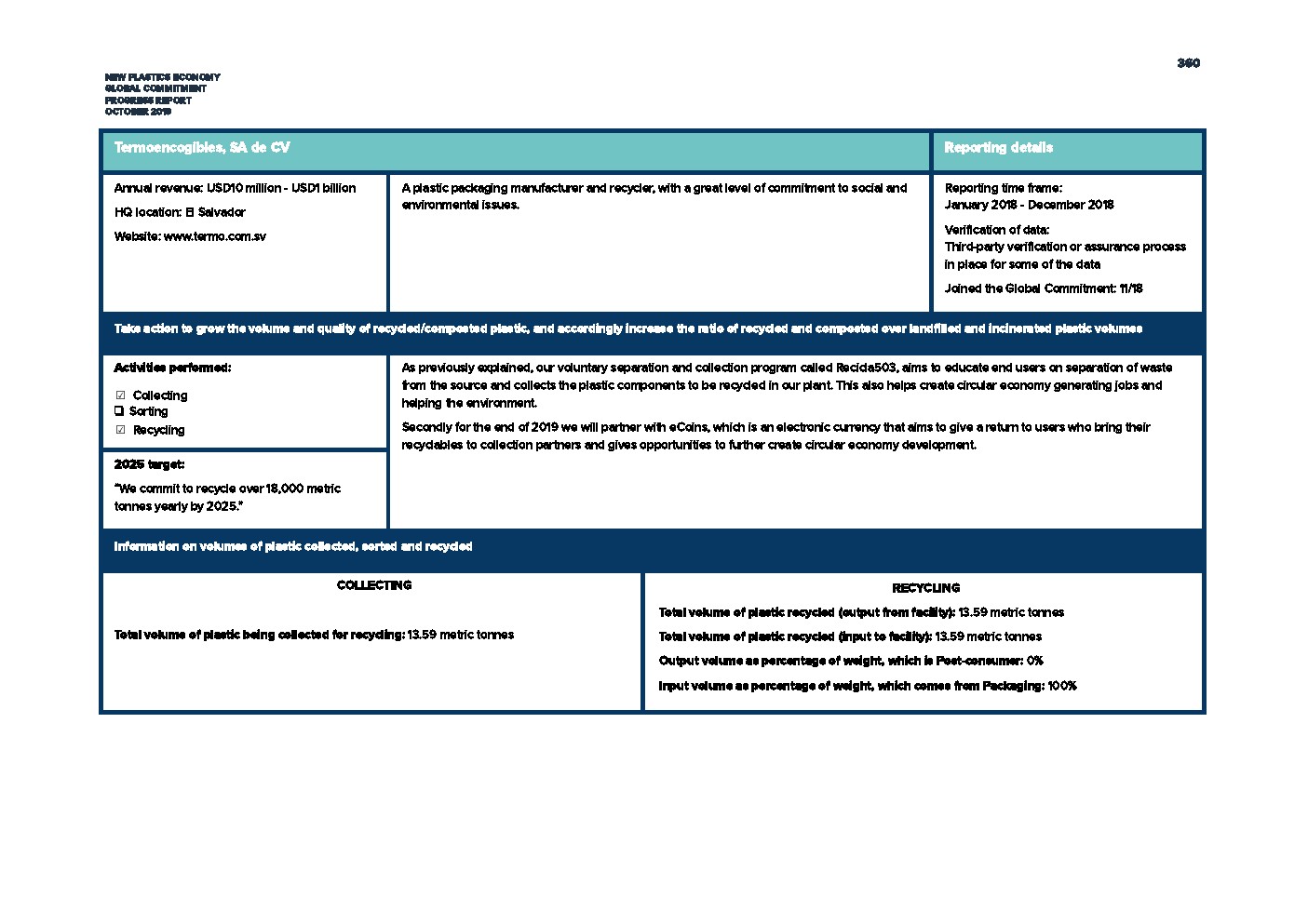签署承诺的回收公司承诺到2025年将废塑料处理量翻两番。政府签约方还与行业和其他利益相关方合作,以实现2025年塑料包装回收率达到70%。