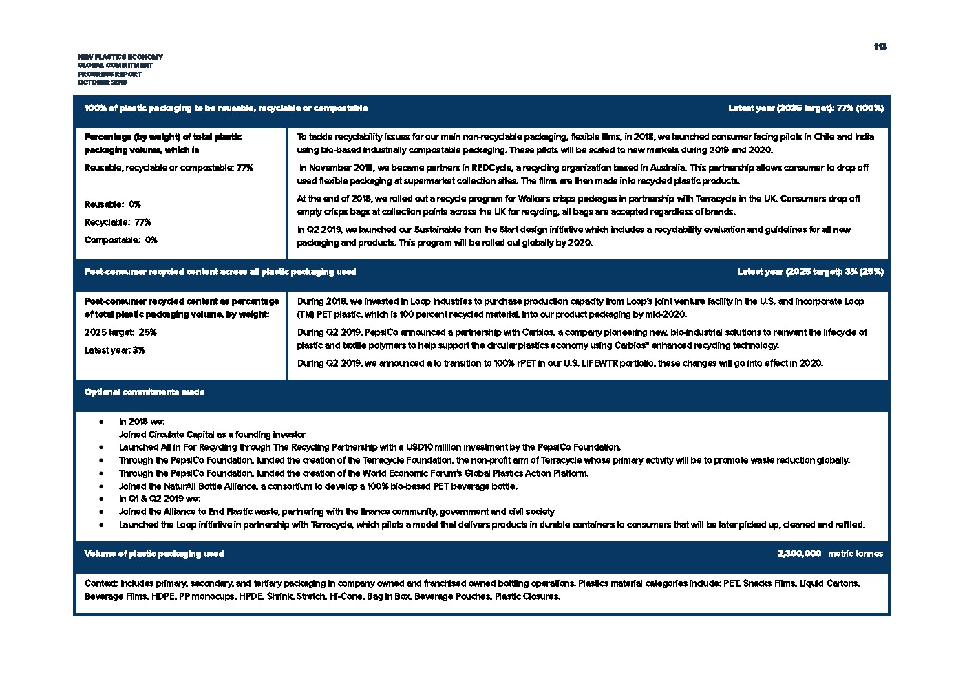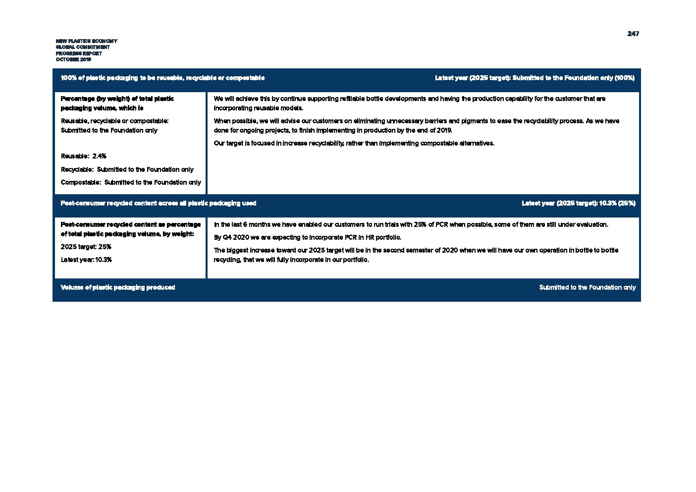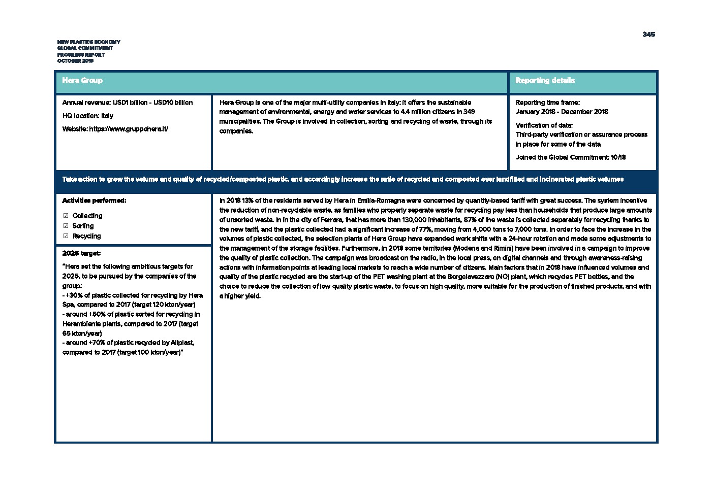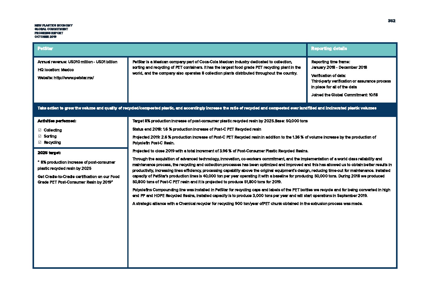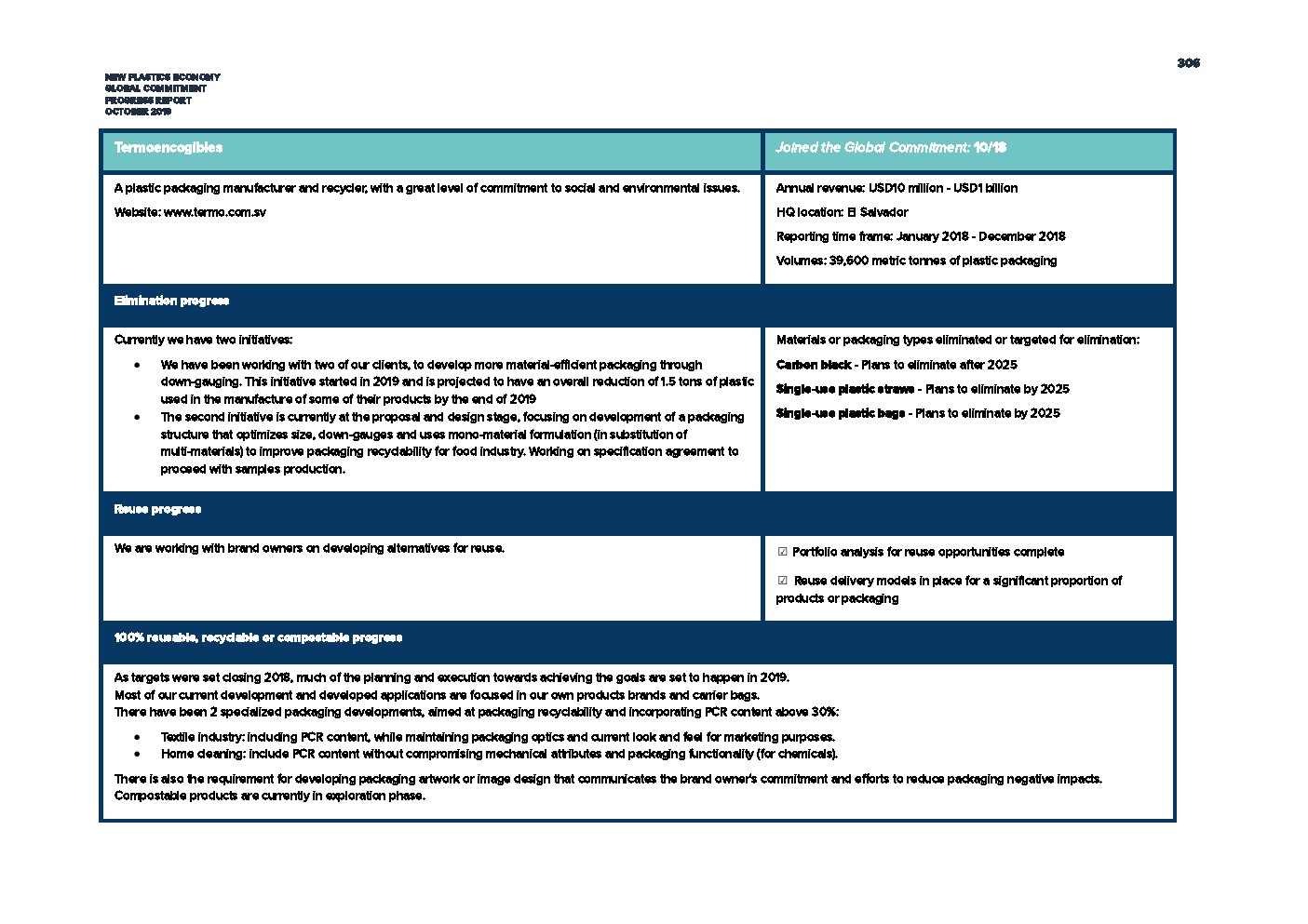 签署承诺的回收公司承诺到2025年将废塑料处理量翻两番。政府签约方还与行业和其他利益相关方合作,以实现2025年塑料包装回收率达到70%。